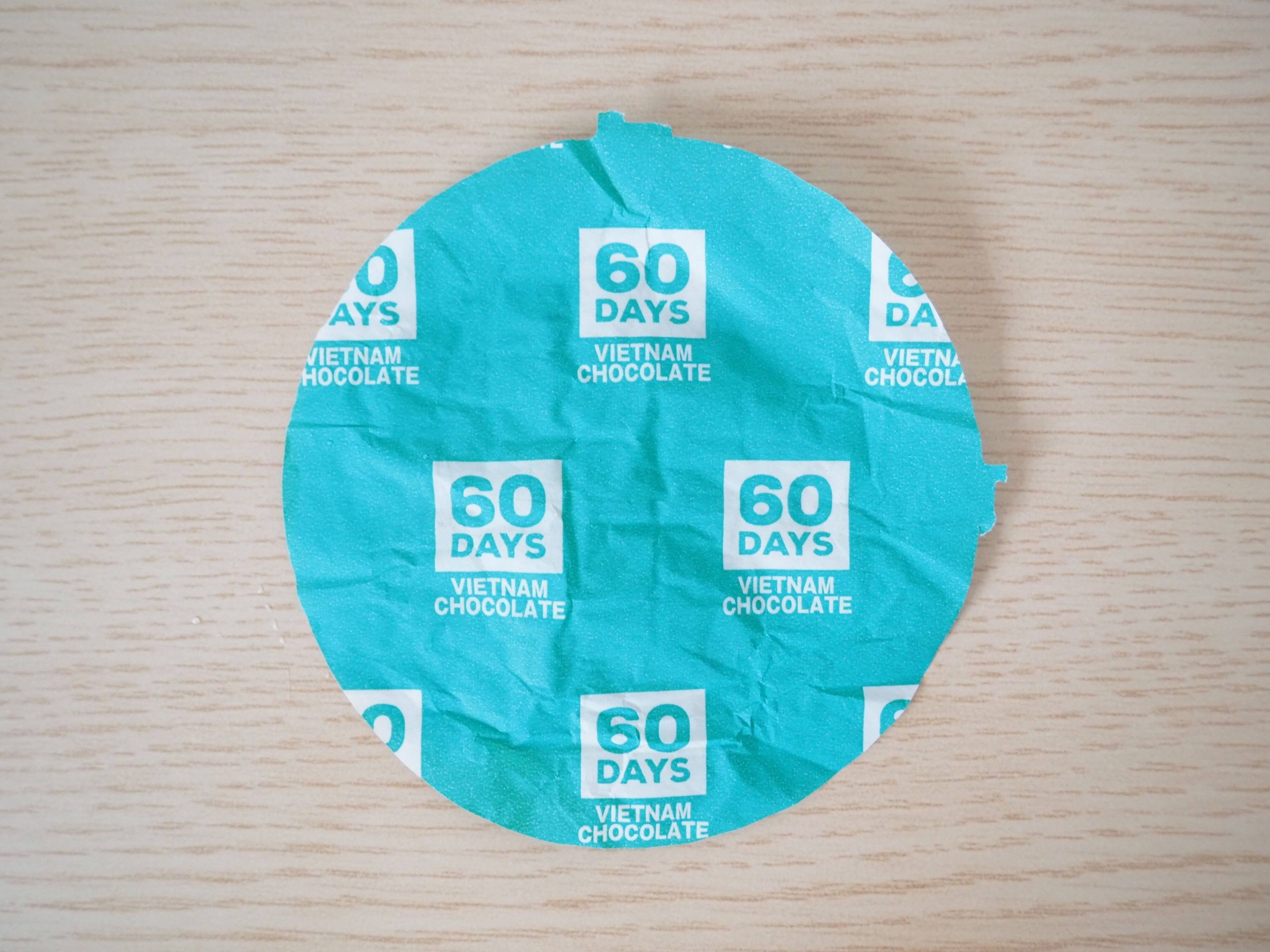 中華まんにしては珍しいと思われる水色の紙に乗っています。ここでもしっかり「60DAYSチョコレート」をアピール。