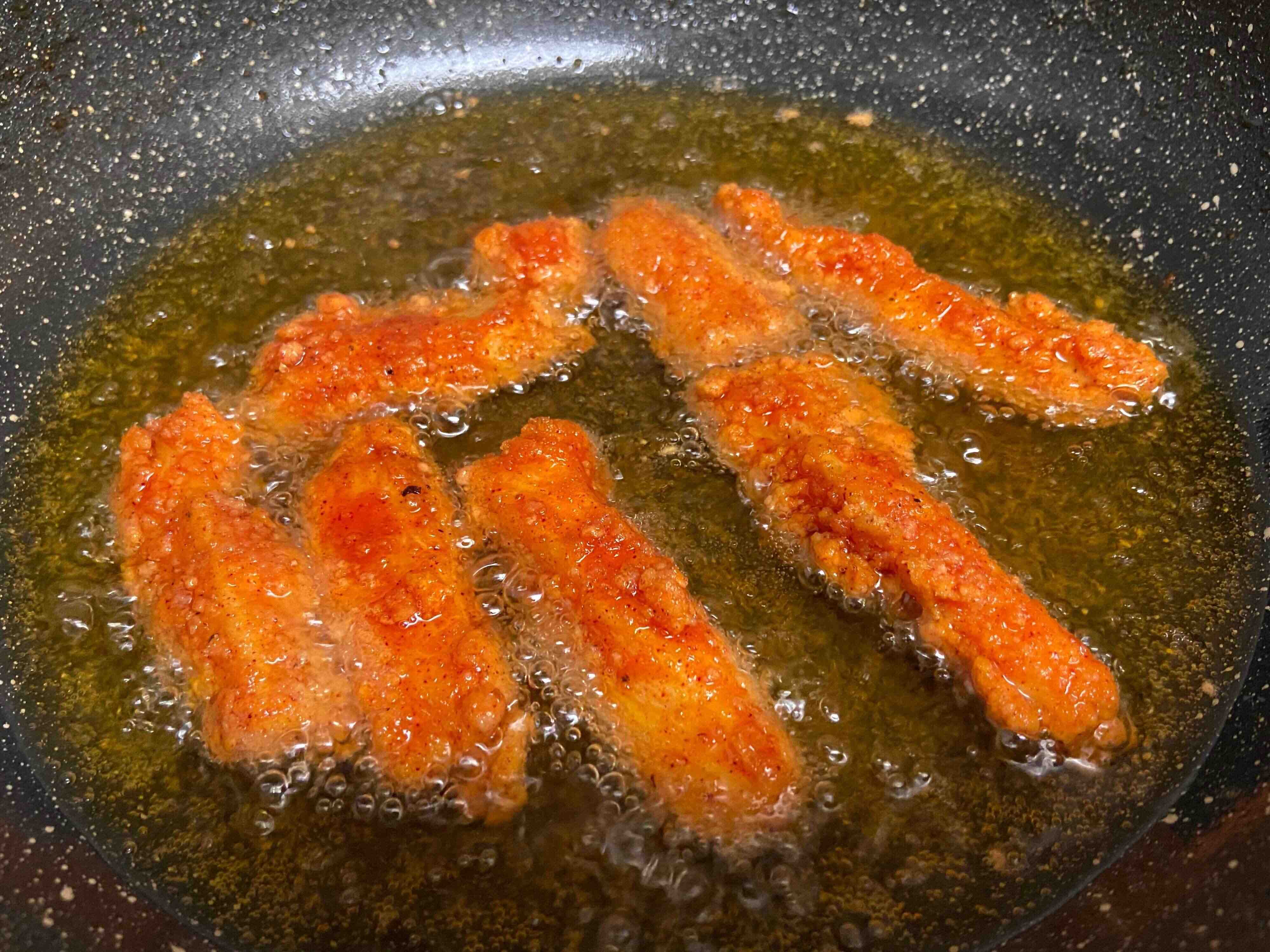 揚げていると揚げ油が赤く色づいてきました…