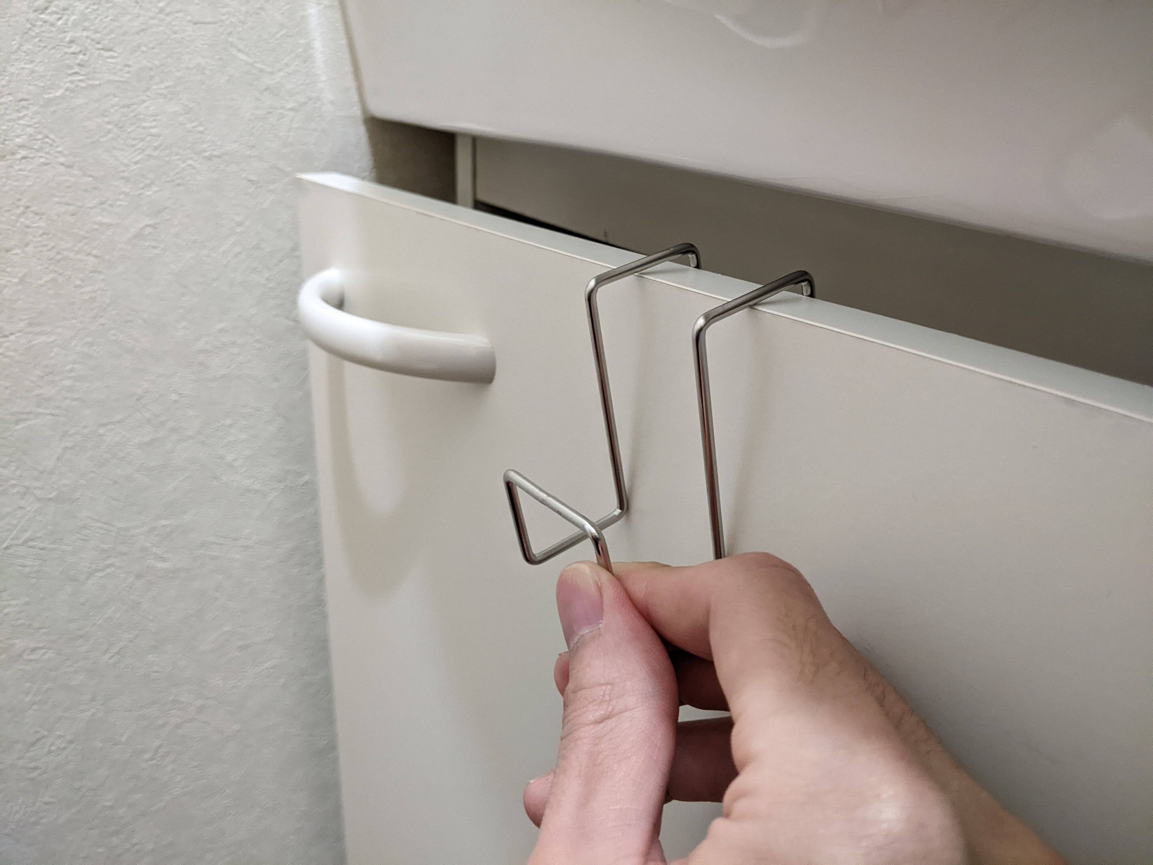 扉にひっかけるだけで、取りつけは完了です。