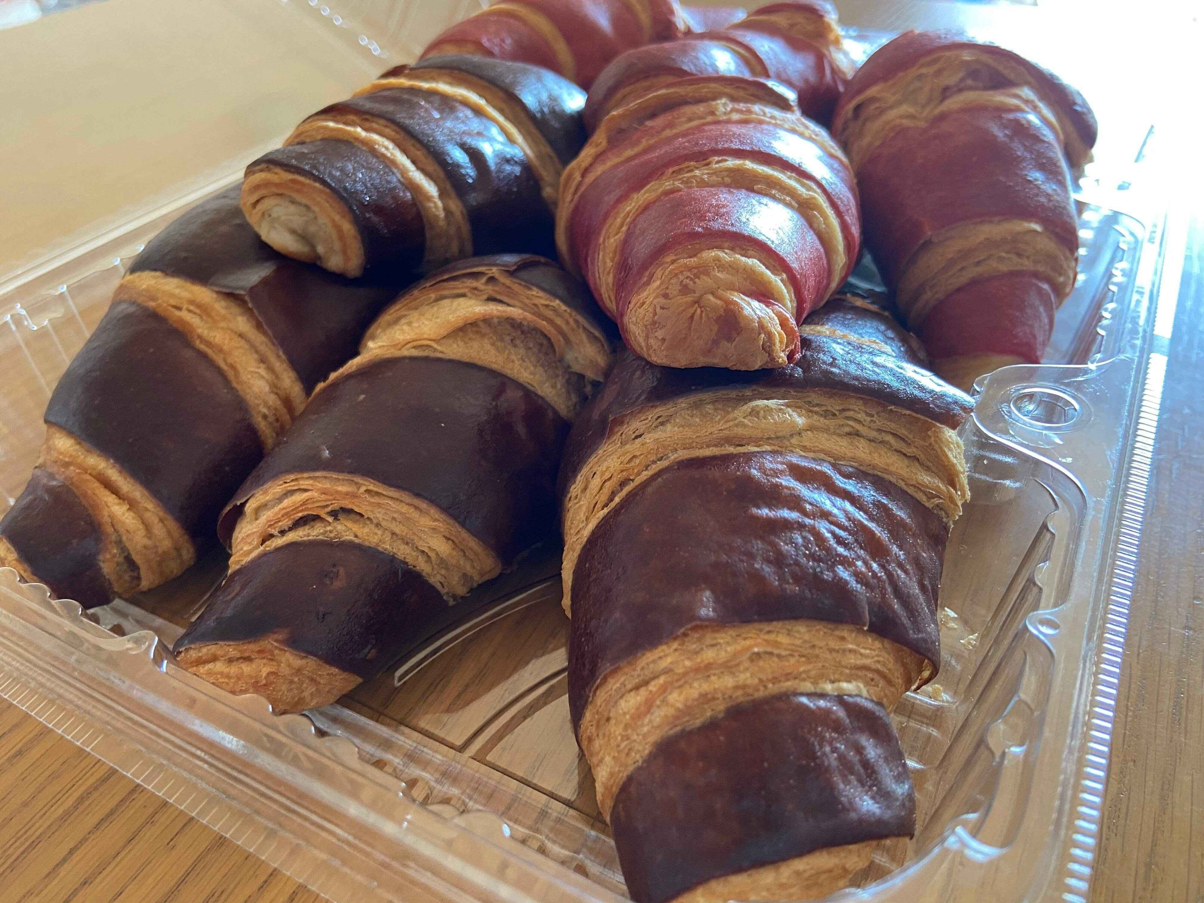 コストコのベーカリーコーナーにカラフルな新商品が登場!「バイカラークロワッサン」(購入時:1,280円)です。