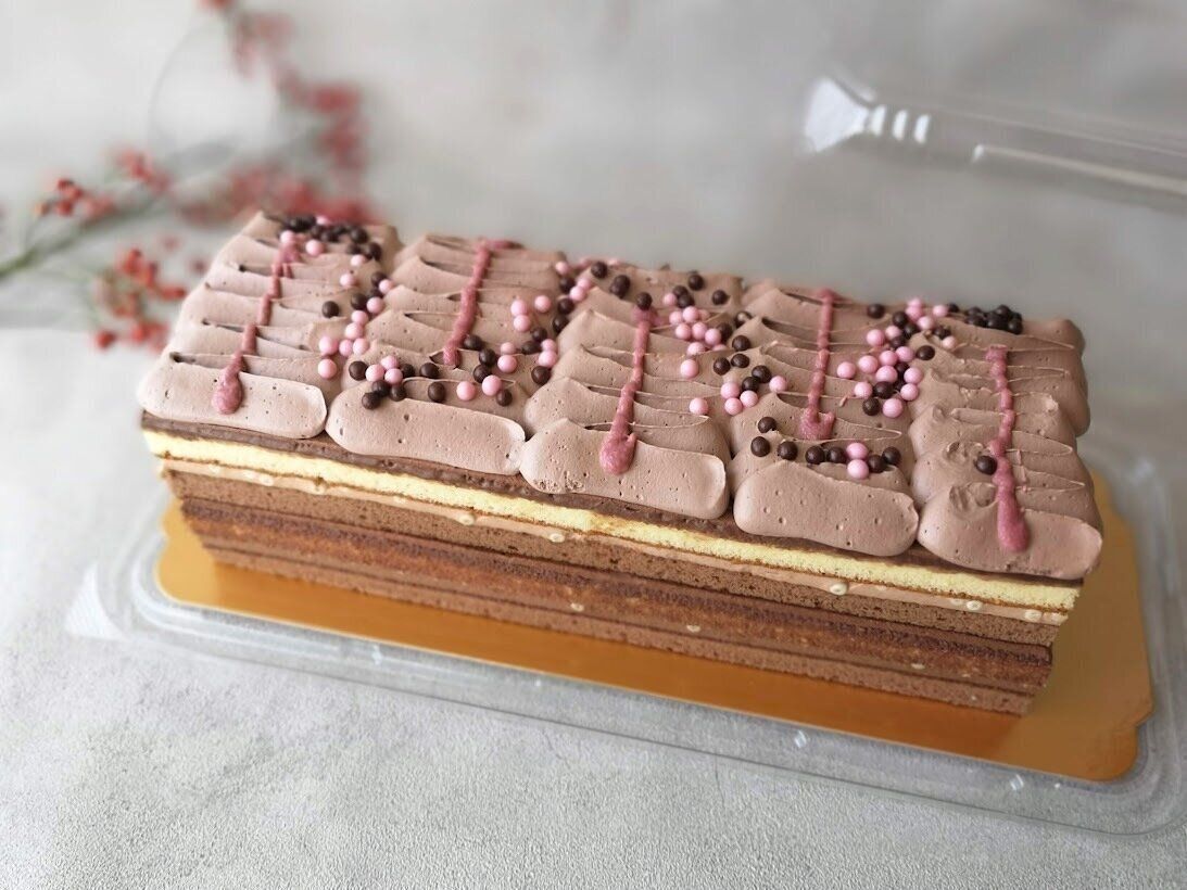 バータイプの商品で、横から見てもケーキの層がきれいに見えますね。
