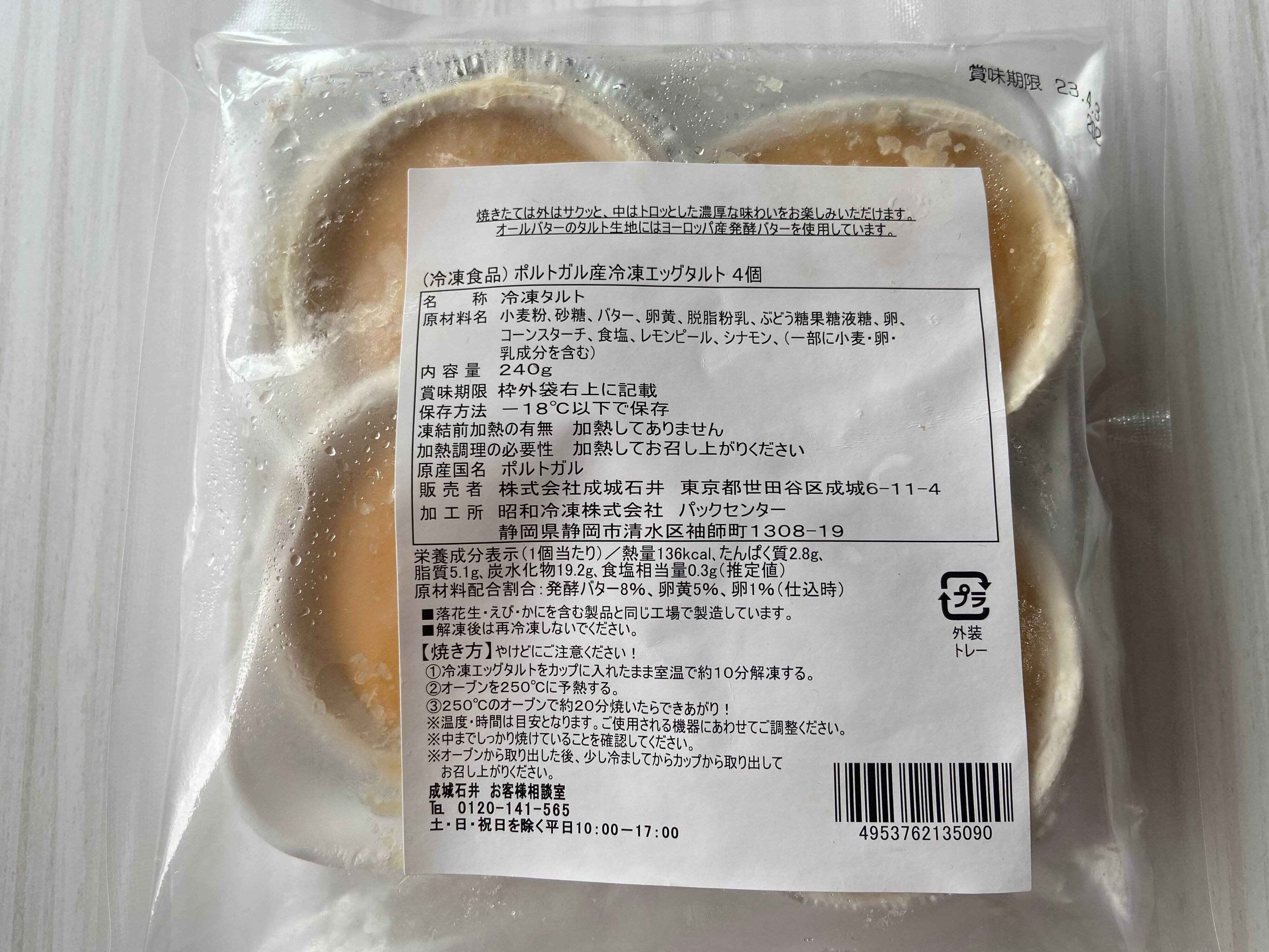 今年の7月より新発売の「ポルトガル産冷凍エッグタルト」(購入時:647円)。