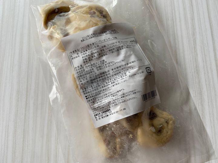成城石井の冷凍パン生地シリーズ、7月末に新発売の「フランス産冷凍ミニ・パン・オ・レザン」(購入時:647円)。