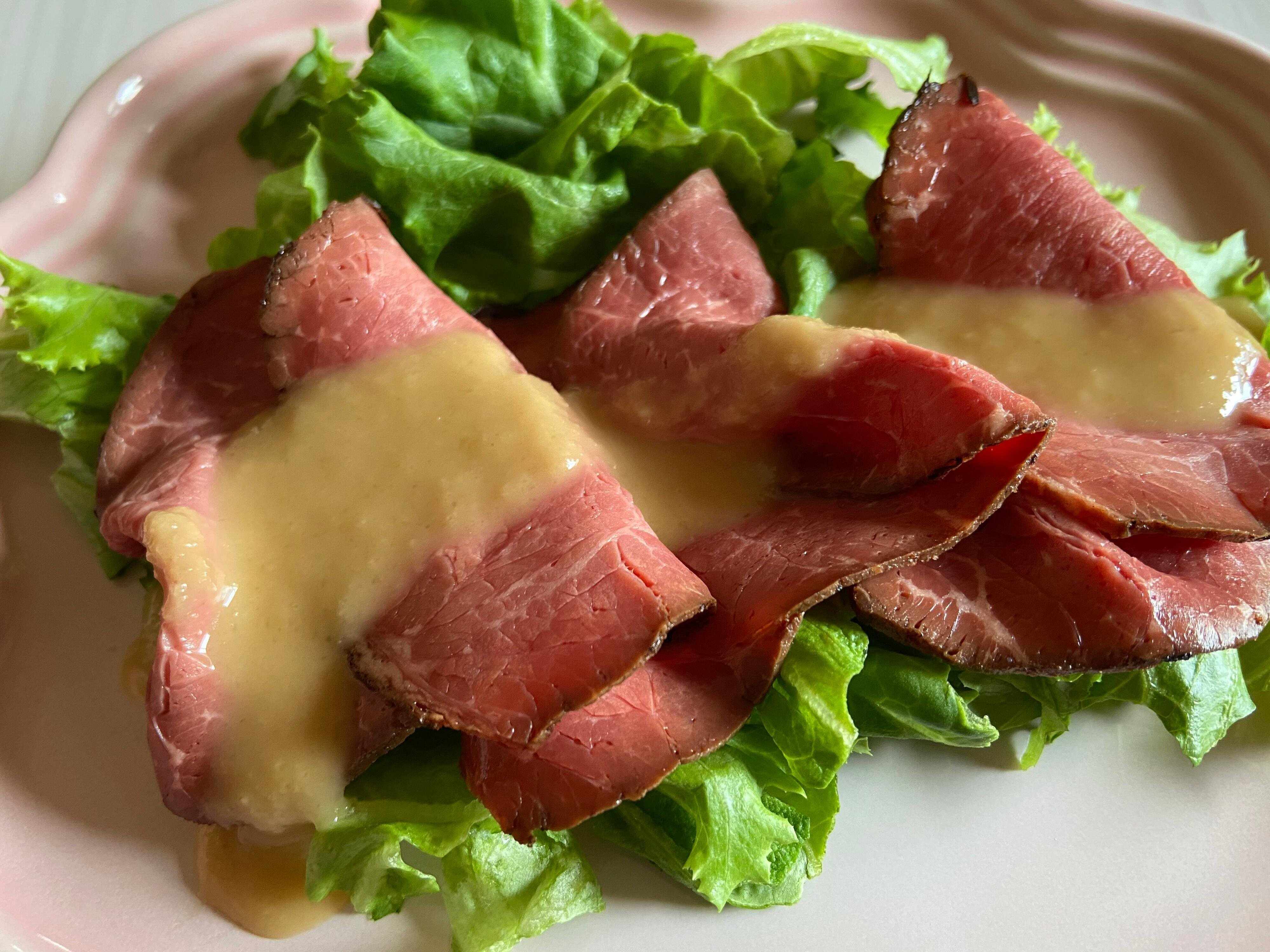 肉料理に合うとパッケージに記載があったので、ローストビーフにかけてみました。