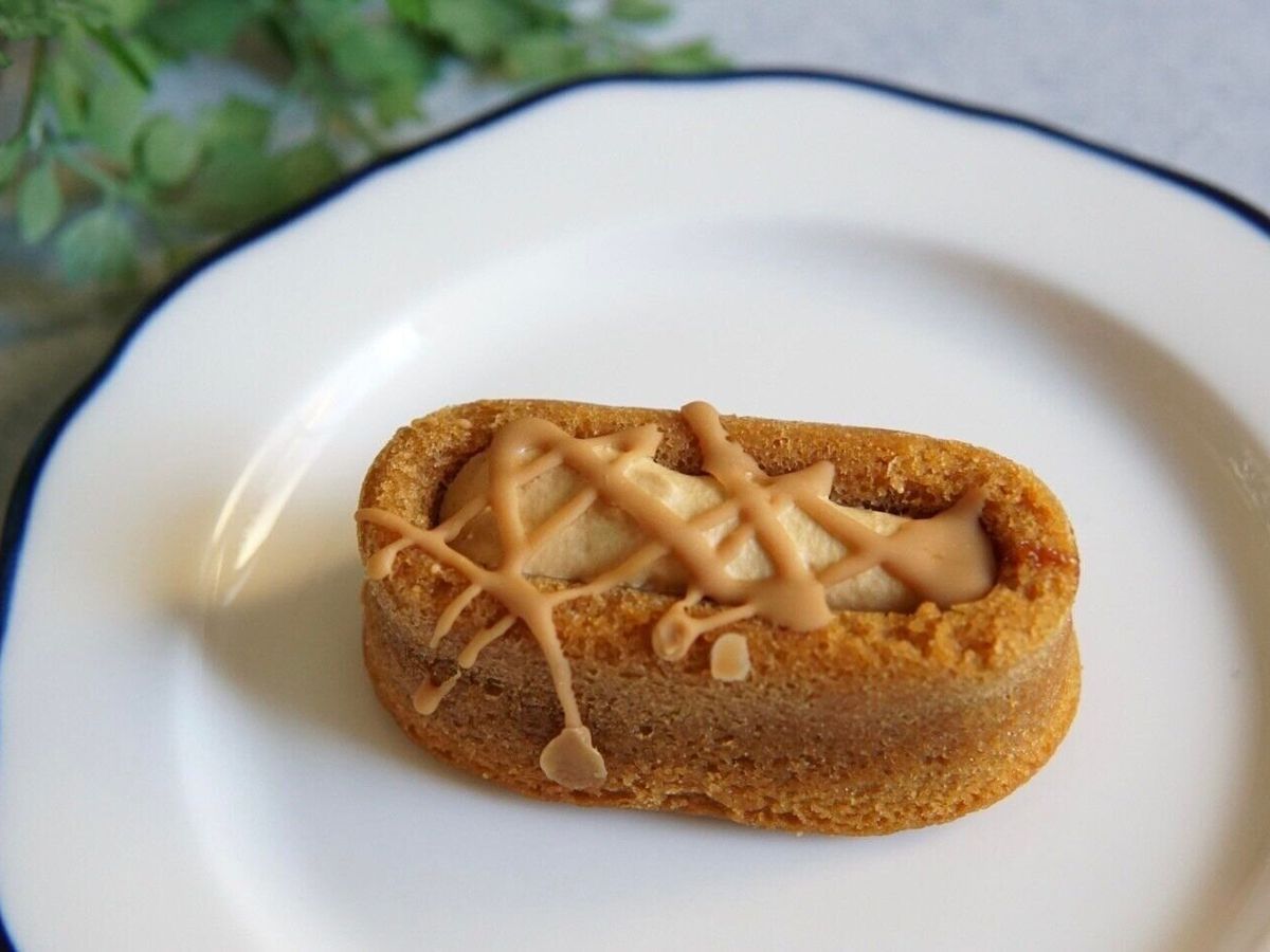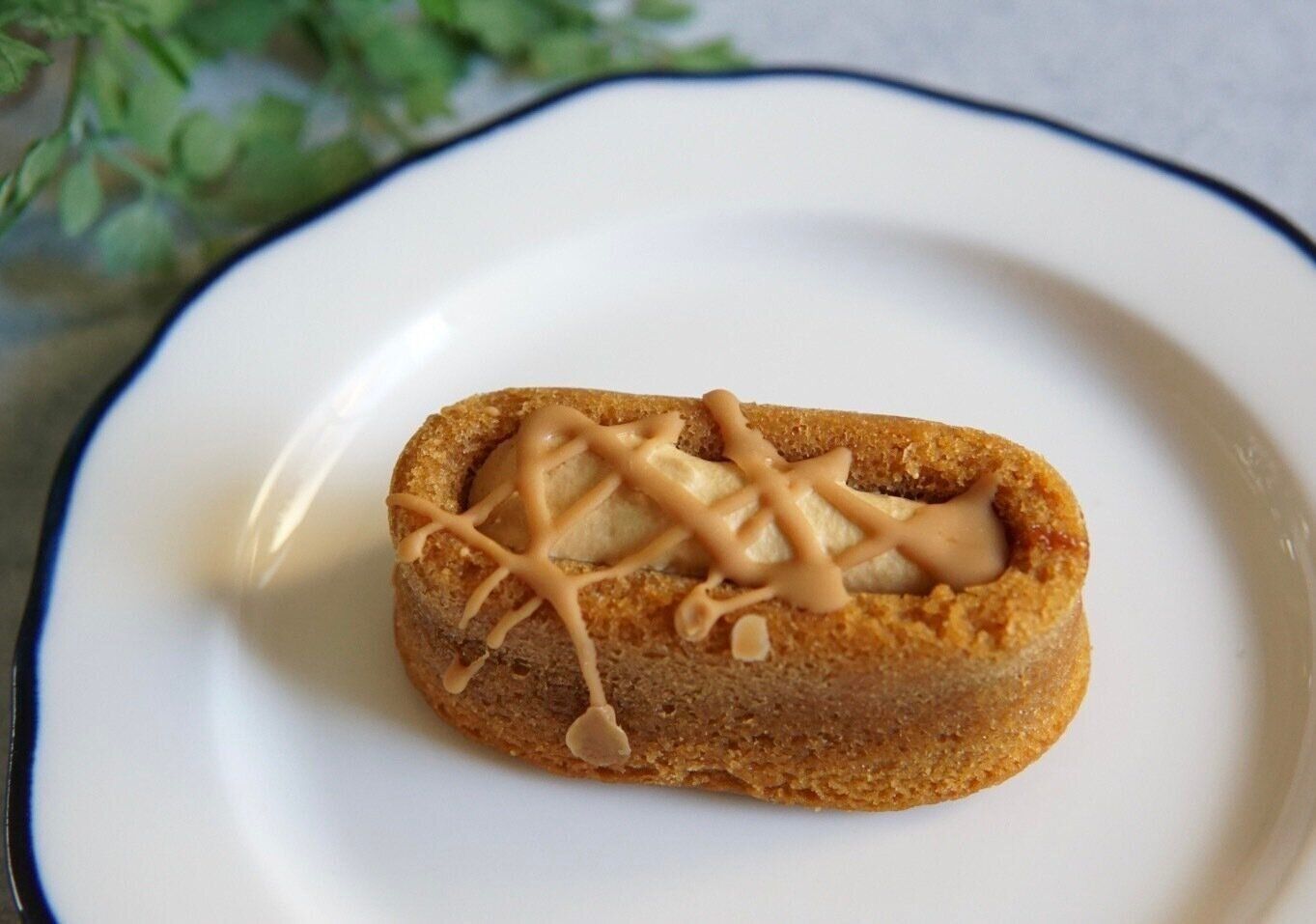 カットしてみると、さらに中からとろりとキャラメルソースがお目見えします。こういう場合、生キャラメルのようなネットリ系ソースになるのかなと想像していましたが、予想に反しさらっとした系のソースで、それがまたうまい具合に周りに絡みつき、口の中でキャラメル感をより膨らませてくれます。