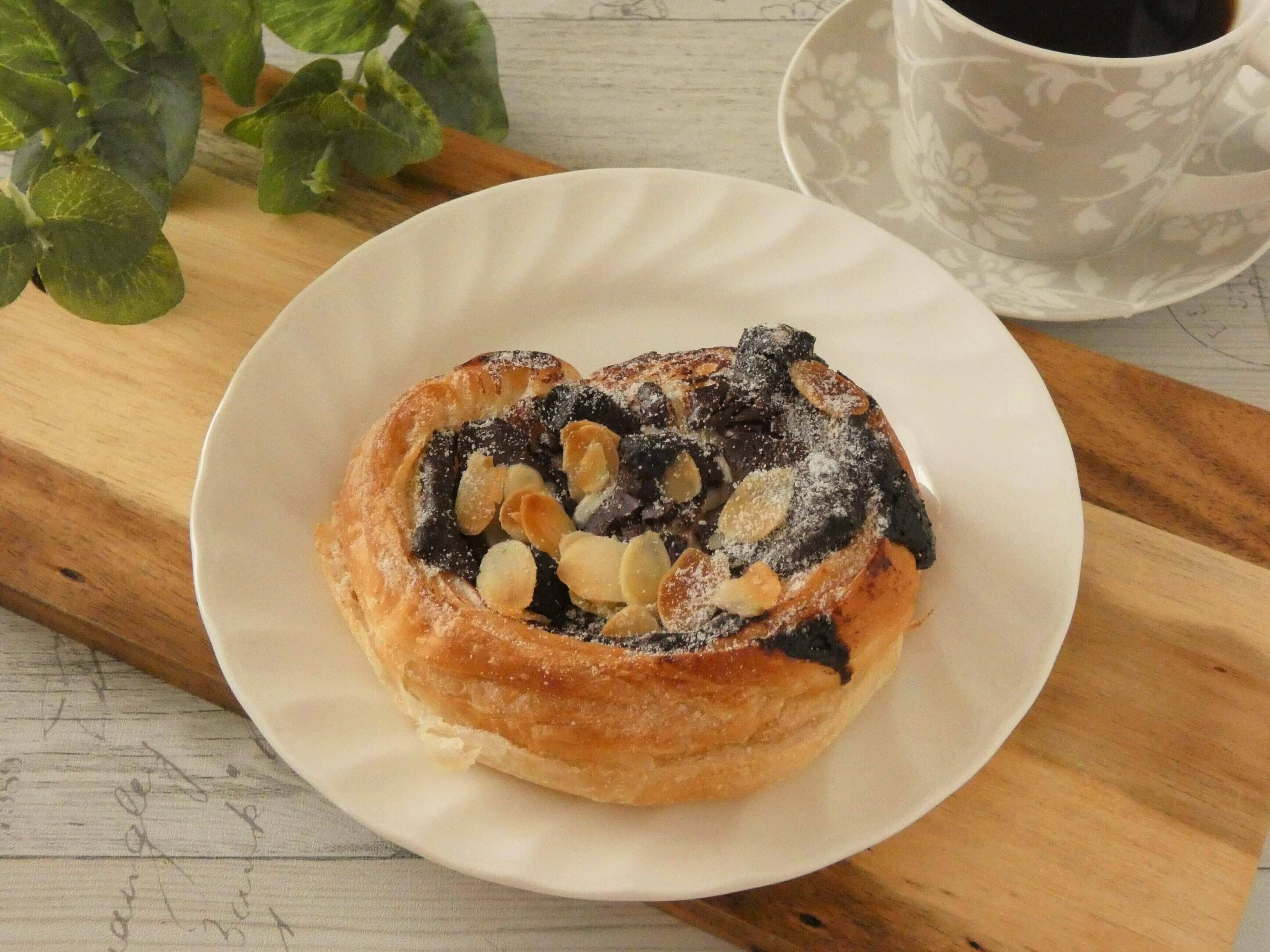 デニッシュ生地はふわふわサクサクで軽い食感。発酵バター入りクリームのコクがたまらないです。チョコクリームはねっとり濃厚で、角切りの焼きチョコのザクザク感がやみつきになるおいしさ!スライスアーモンドもアクセントになって、これはリピ決定です。発酵バターにチョコレートの組み合わせですが、デニッシュの軽さやチョコのほろ苦さで飽きずにペロッと食べられるので、ぜひお試しください。