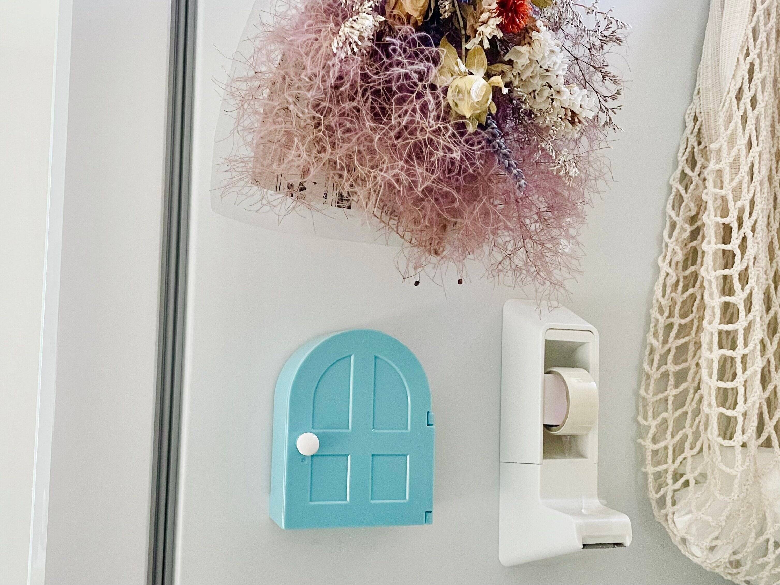 冷蔵庫の横につけてみました。小さなドアがかわいくて、つい開けたくなってしまいます。