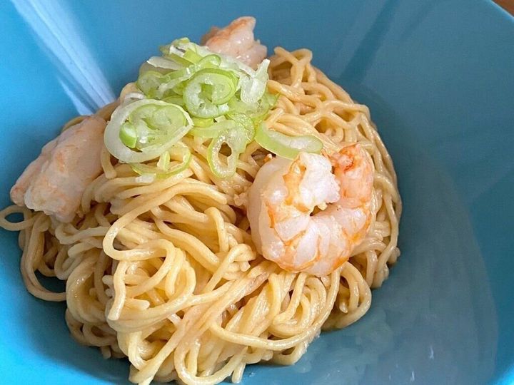 ねり胡麻と味噌のベースに、えびの旨味とごま油の香ばしさを効かせた汁なし麺です。