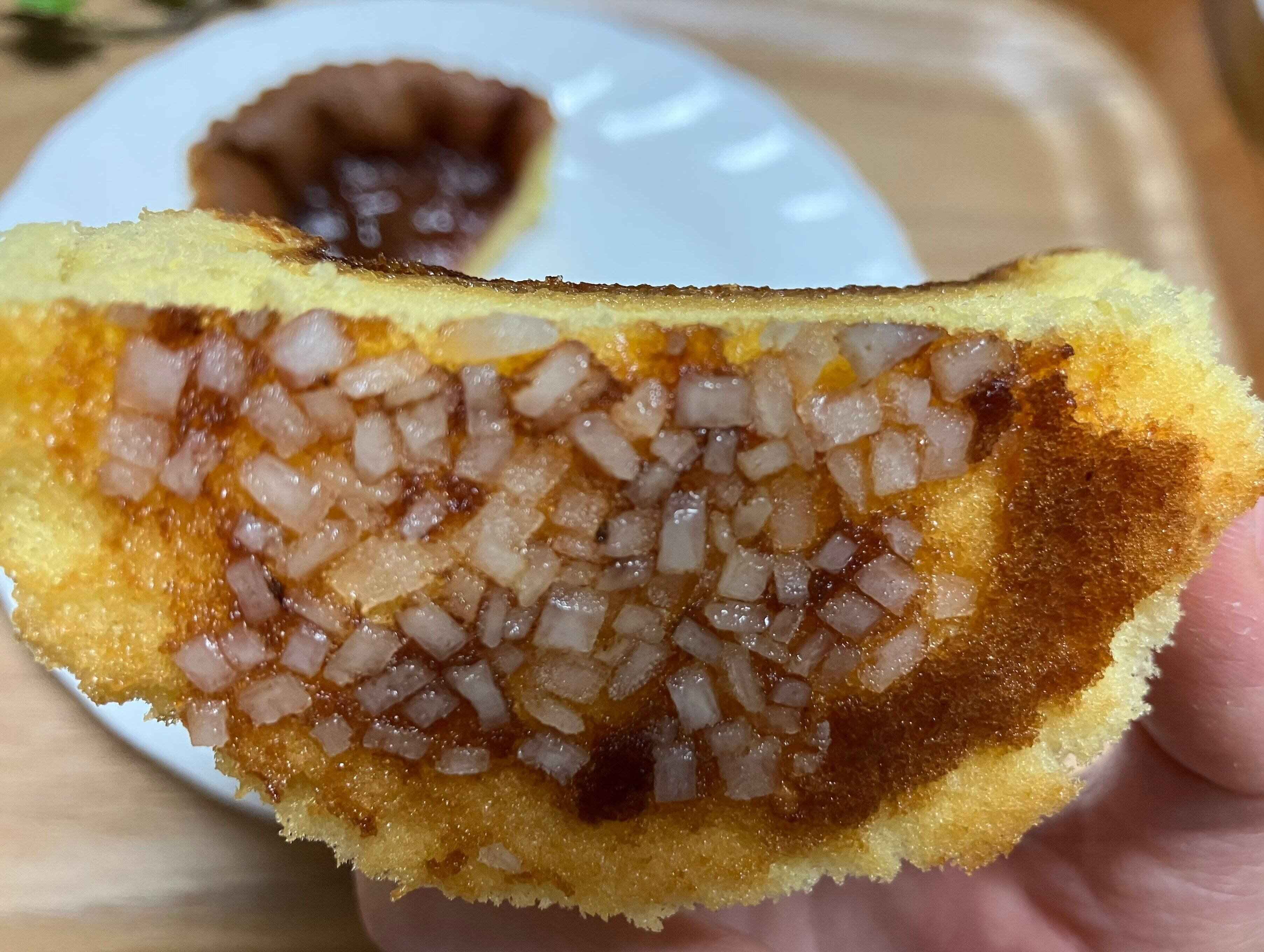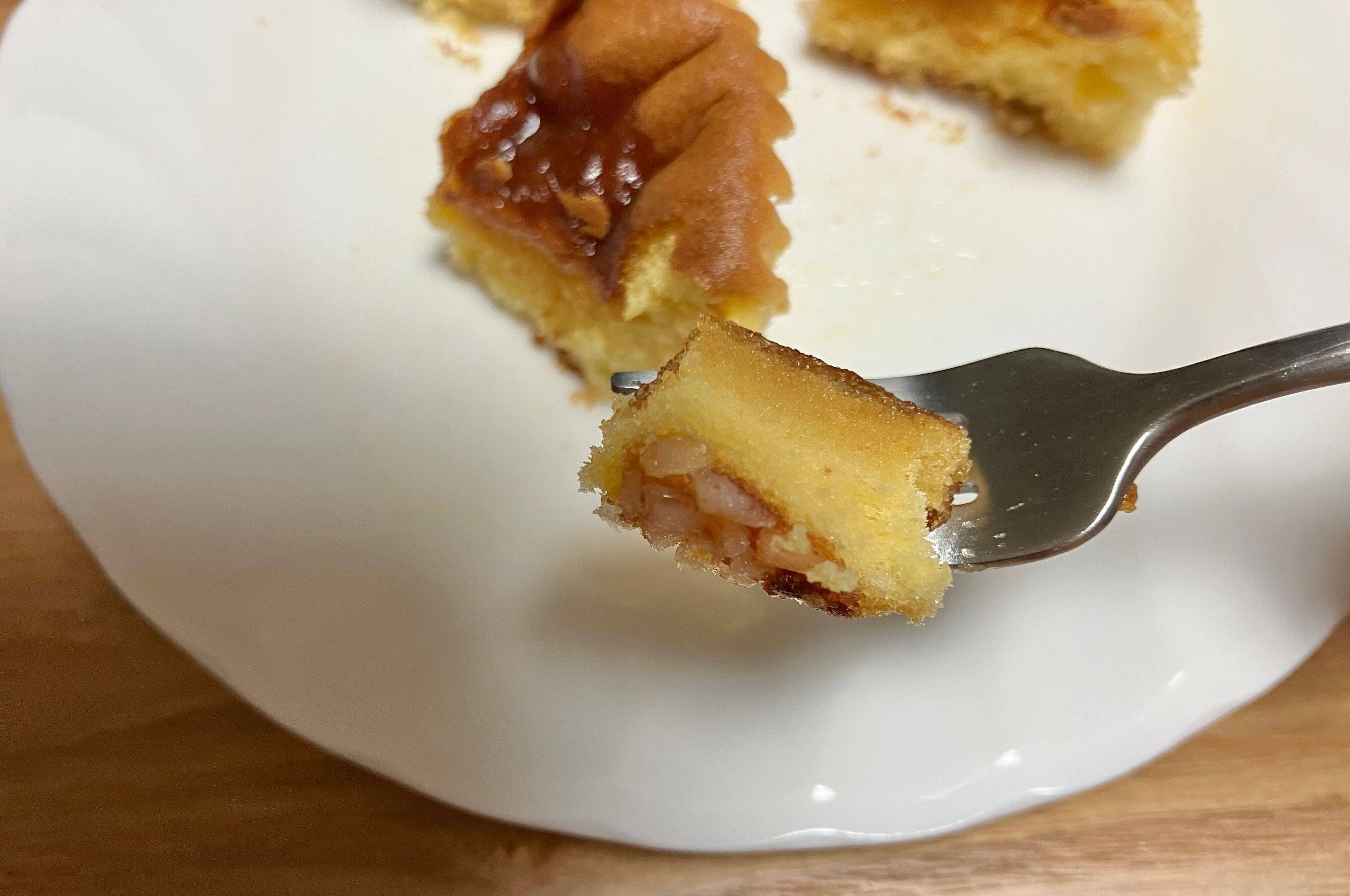 ナイフで半分に切る時にザクッザクっとした感触と音が1番下からしてきたので、予想外で驚きました。