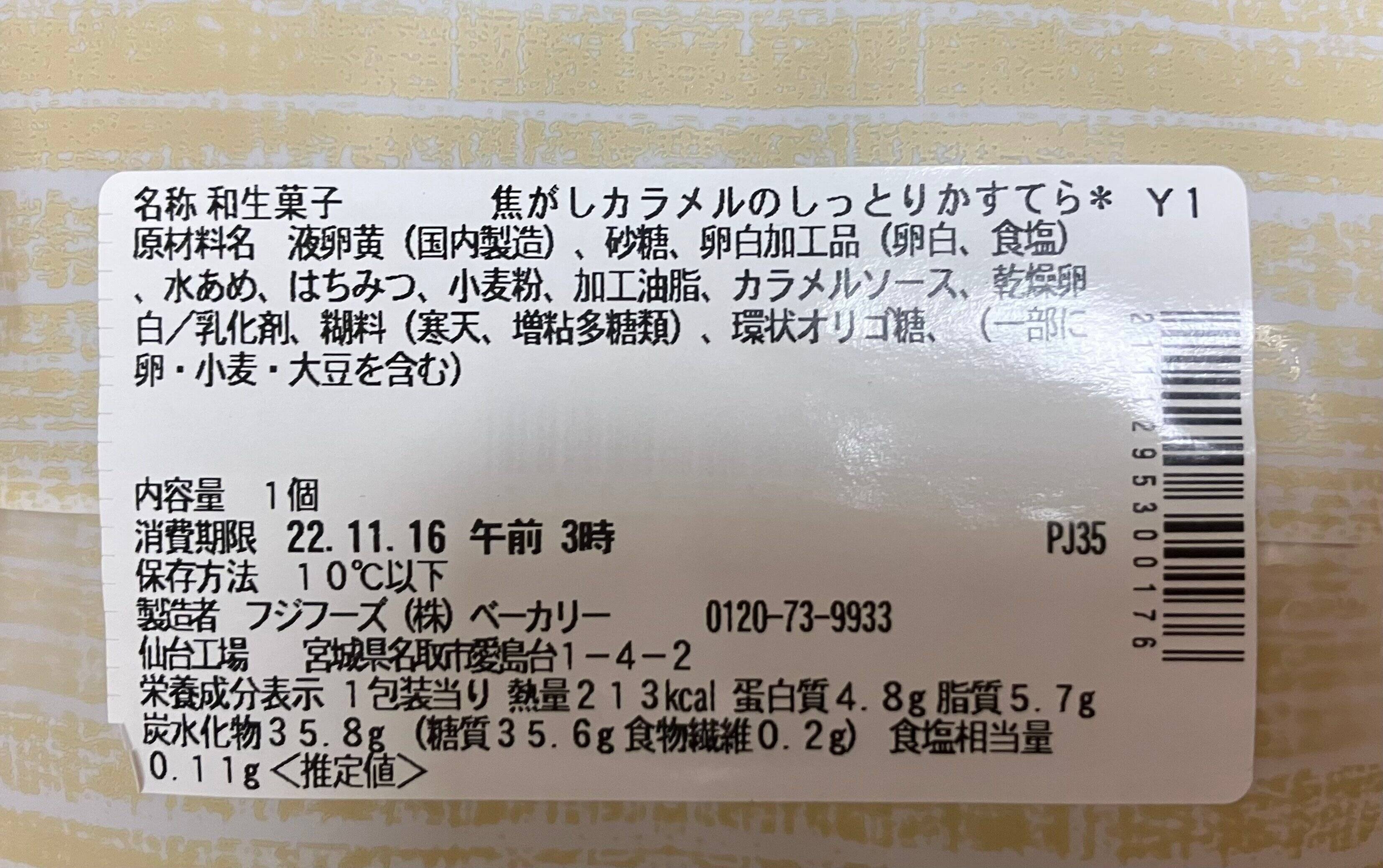色は通常のカステラと同じで黄色と茶色。形が崩れないようにプラスティックのケースに入っています。