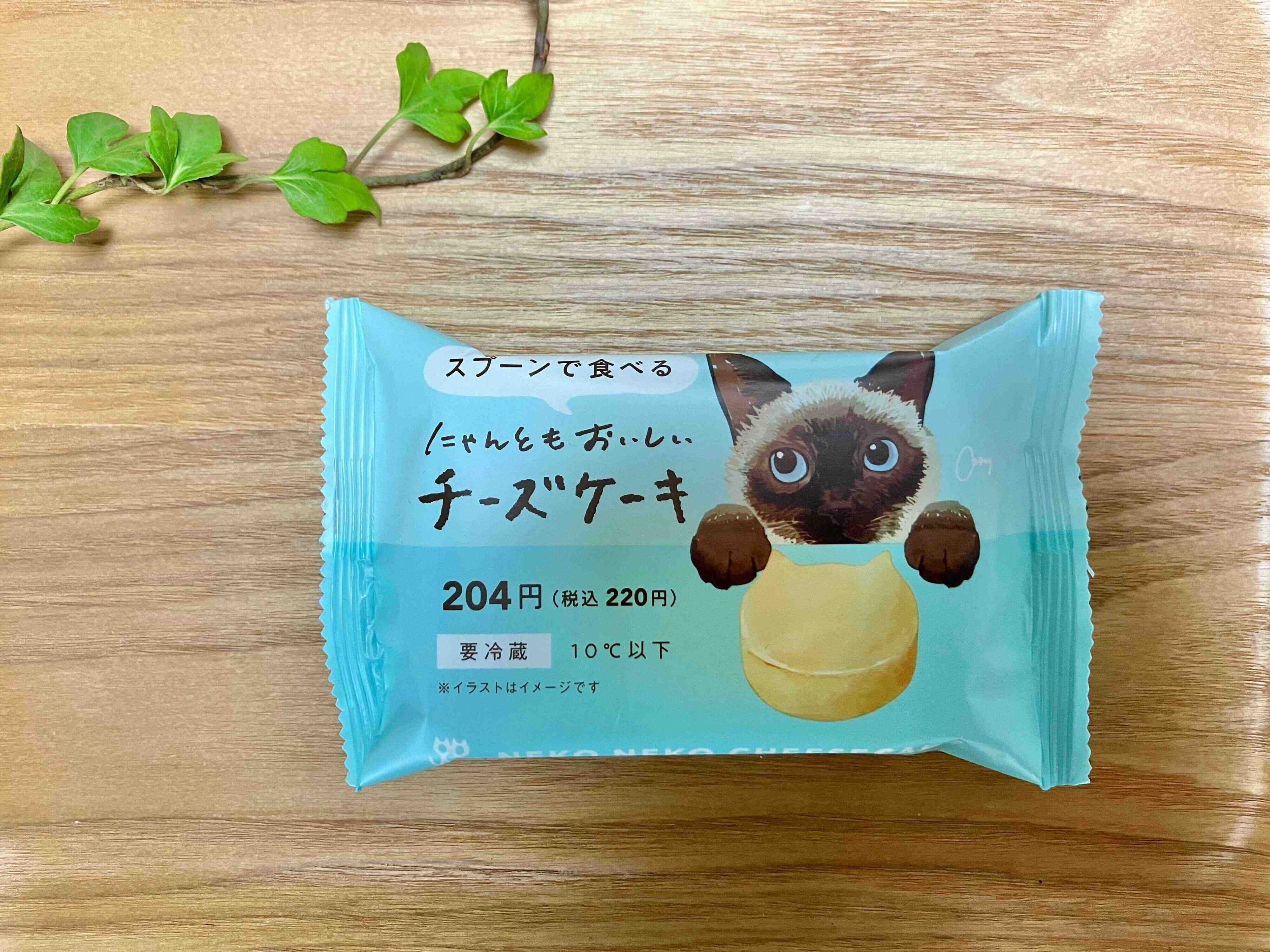私は特に猫好きではないですが、猫のイラストと淡いブルーのパッケージが、他のコンビニスイーツとは一味違って目を惹きます。そして名前も「にゃんともおいしいチーズケーキ」。猫好きさんならお店で見かけたら絶対手にとってしまうのではないでしょうか。