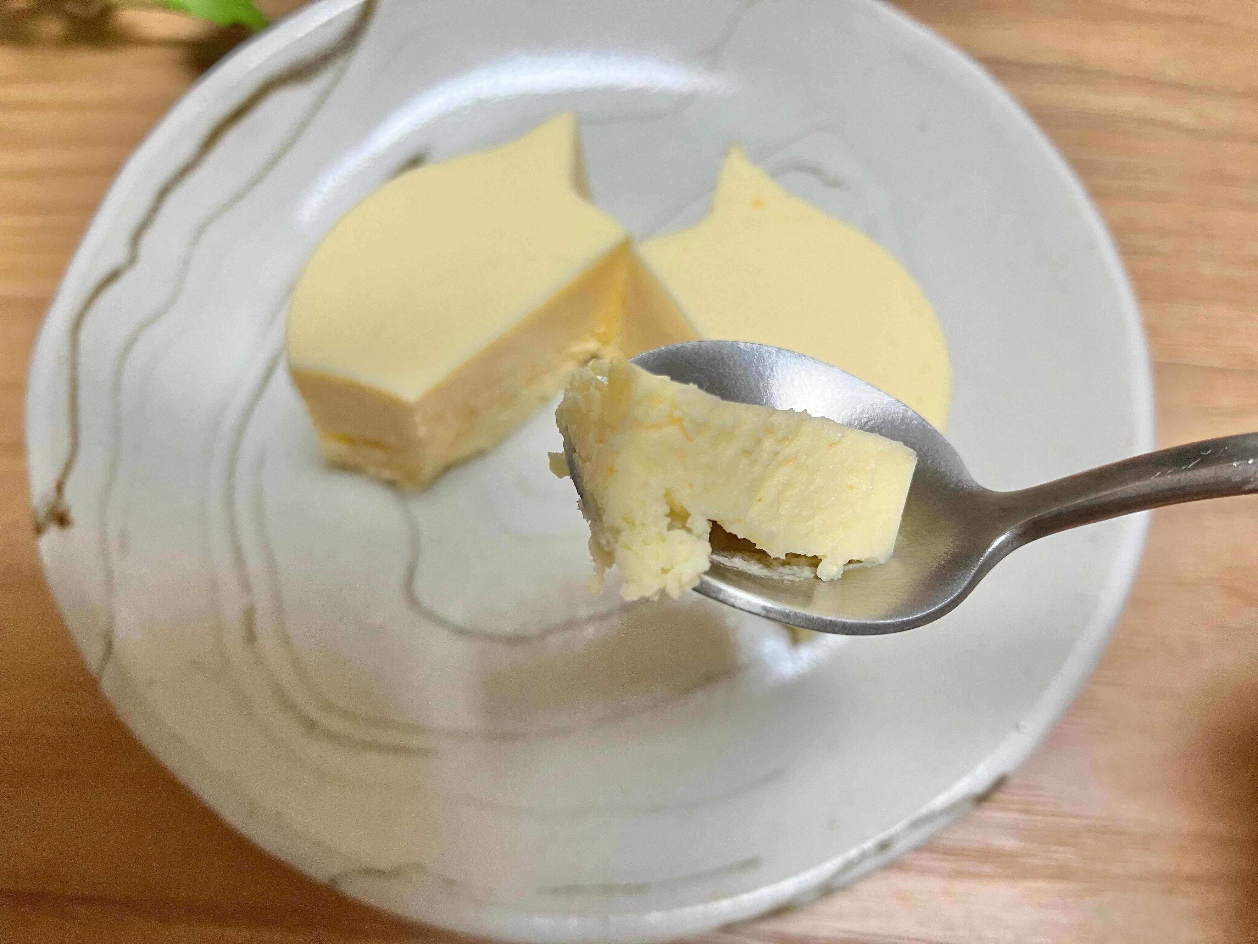 パッケージにも記載されているように、こちらのチーズケーキはスプーンで食べます。