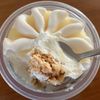 シトラスとピスタチオの淡いグリーン系のカラーがなんとも上品で美しいビジュアル。上から順に「シトラスジュレ」「ピスタチオチーズクリーム」「ピスタチオブリュレ」の3層仕立てのカップケーキです。値段は356円。