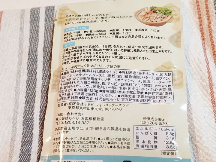 こちらが「牛乳でつくる あさりミルク鍋の素」213円です。