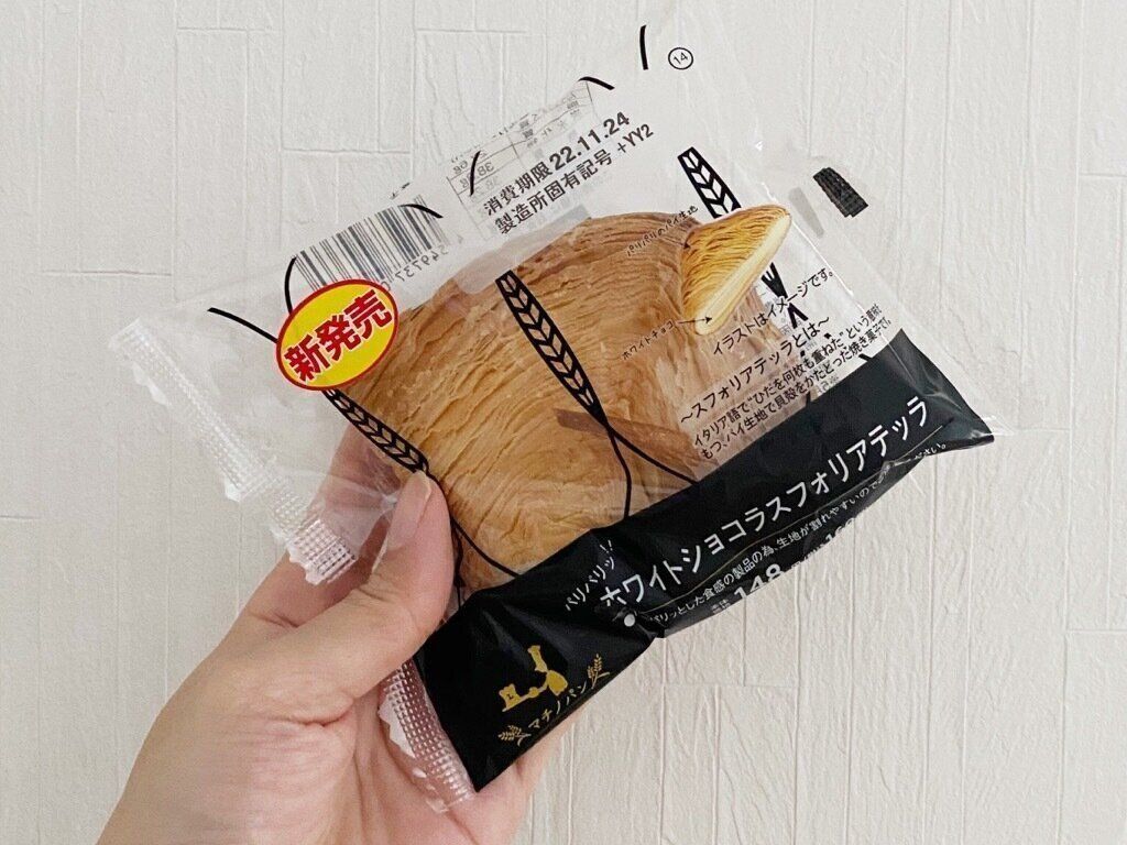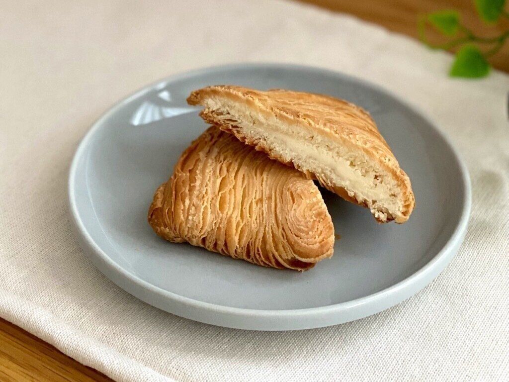 パリパリ食感のパイ生地で、ホワイトショコラをサンドしたスイーツパンです。