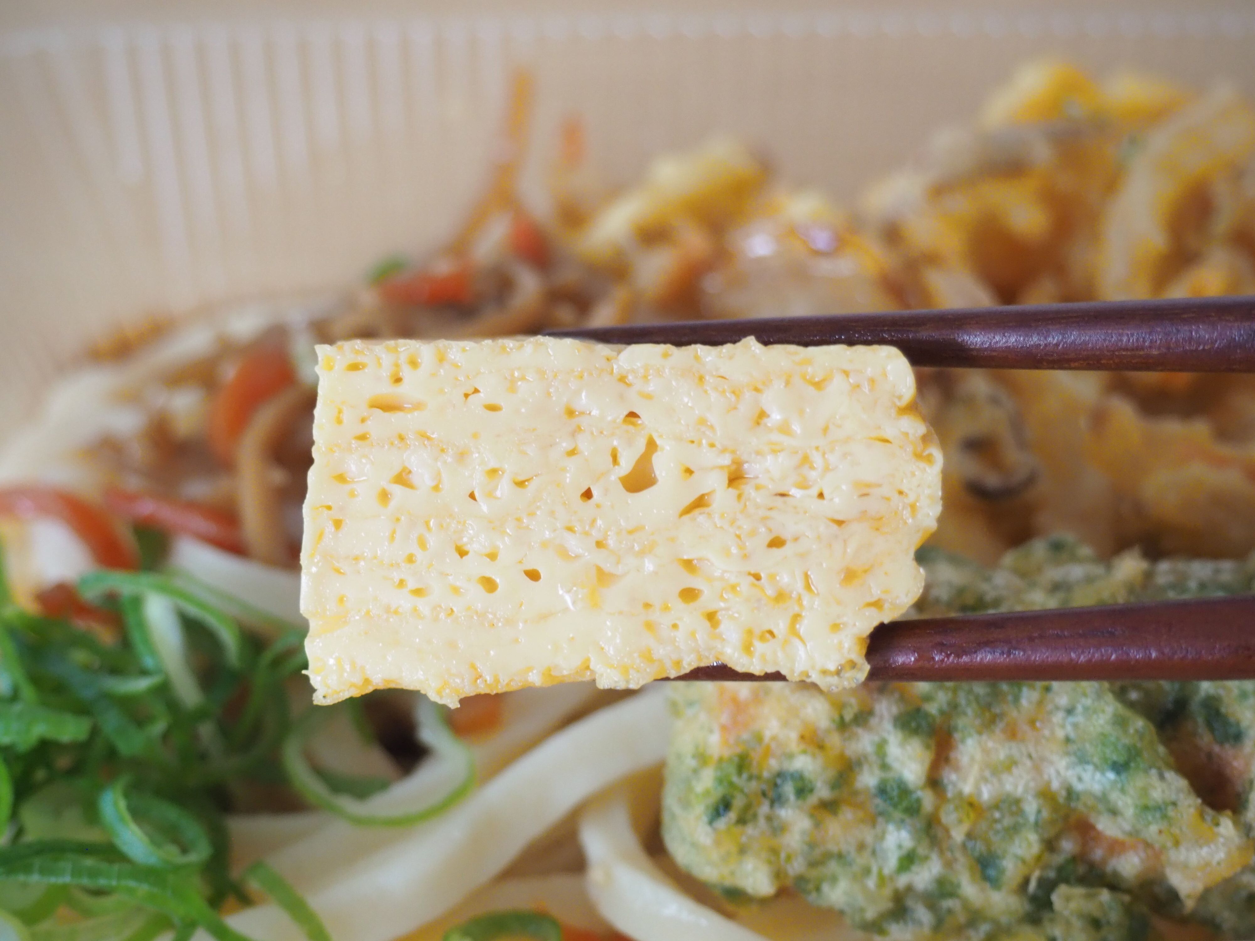 一口サイズの玉子焼きは甘めでジューシー。だしもきいているから、意外にもうどんやつゆとの相性も抜群です。