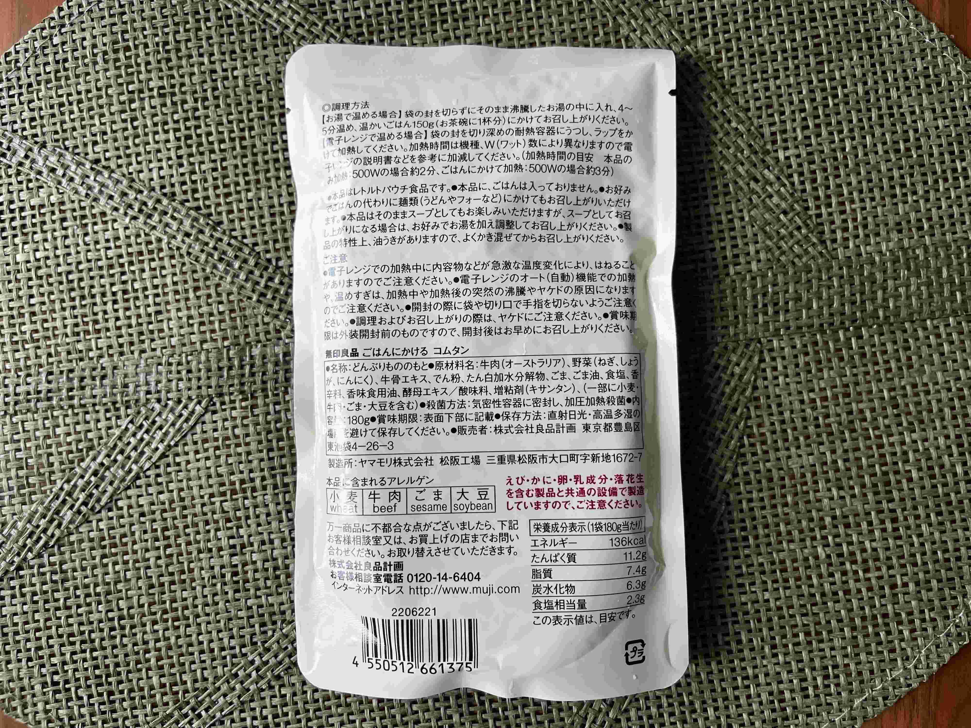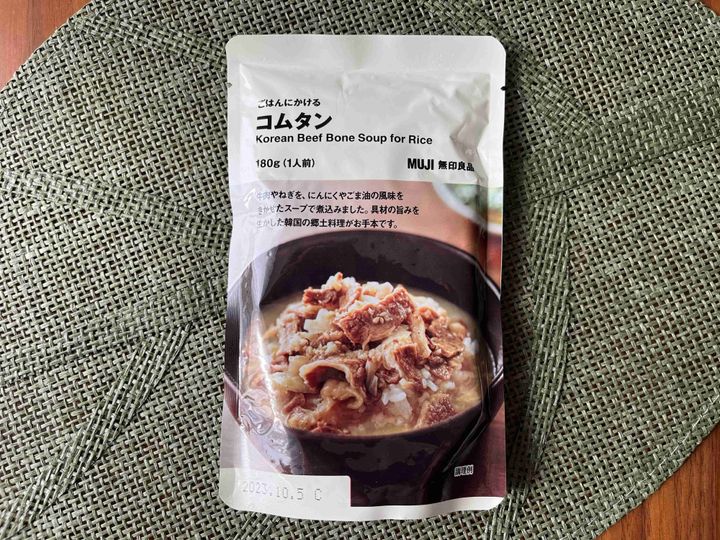 「コムタン」は韓国料理で、牛肉を煮込んだシンプルなスープのこと。無印良品のコムタンは、牛肉とねぎを、にんにく・ごま油の風味を生かしたスープで煮込んでいるそう。