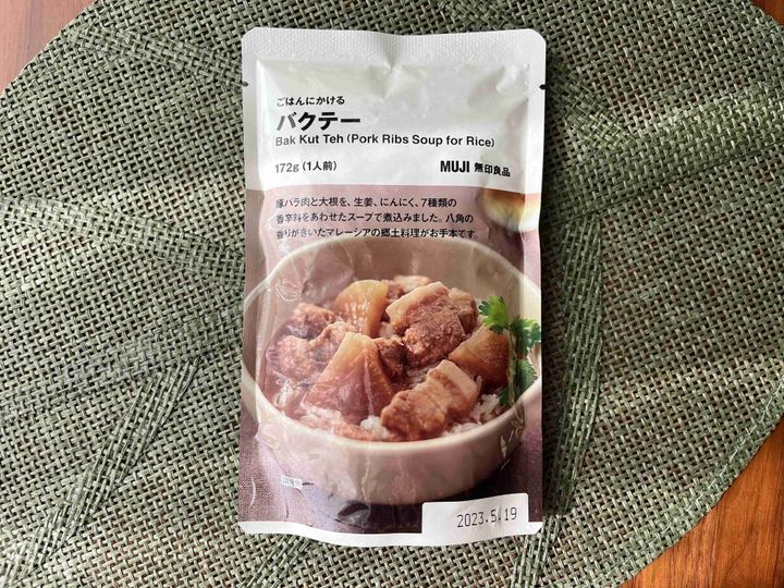 マレーシアやシンガポールの郷土料理「バクテー」。漢字では「肉骨茶」と書き、骨つき豚肉を、香辛料やにんにくなどと煮込んだスープ料理のことを指します。無印良品のバクテーは、豚バラ肉と大根を、生姜、にんにく、7種の香辛料と合わせたスープで煮込んでいます。