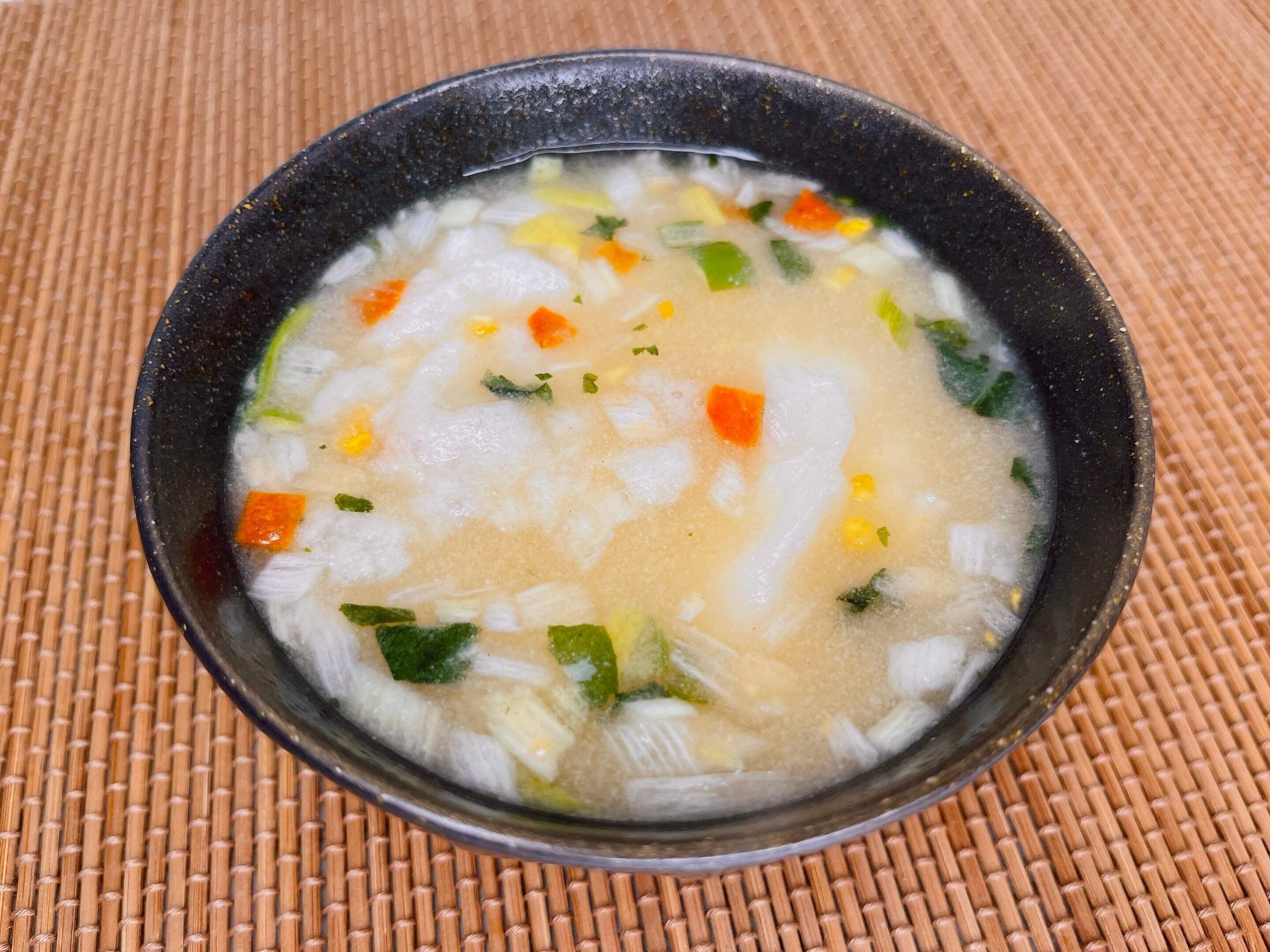 少しとろみのあるかつお風味の白みそスープは、とっても上品な優しい味わいで、お餅との相性抜群!