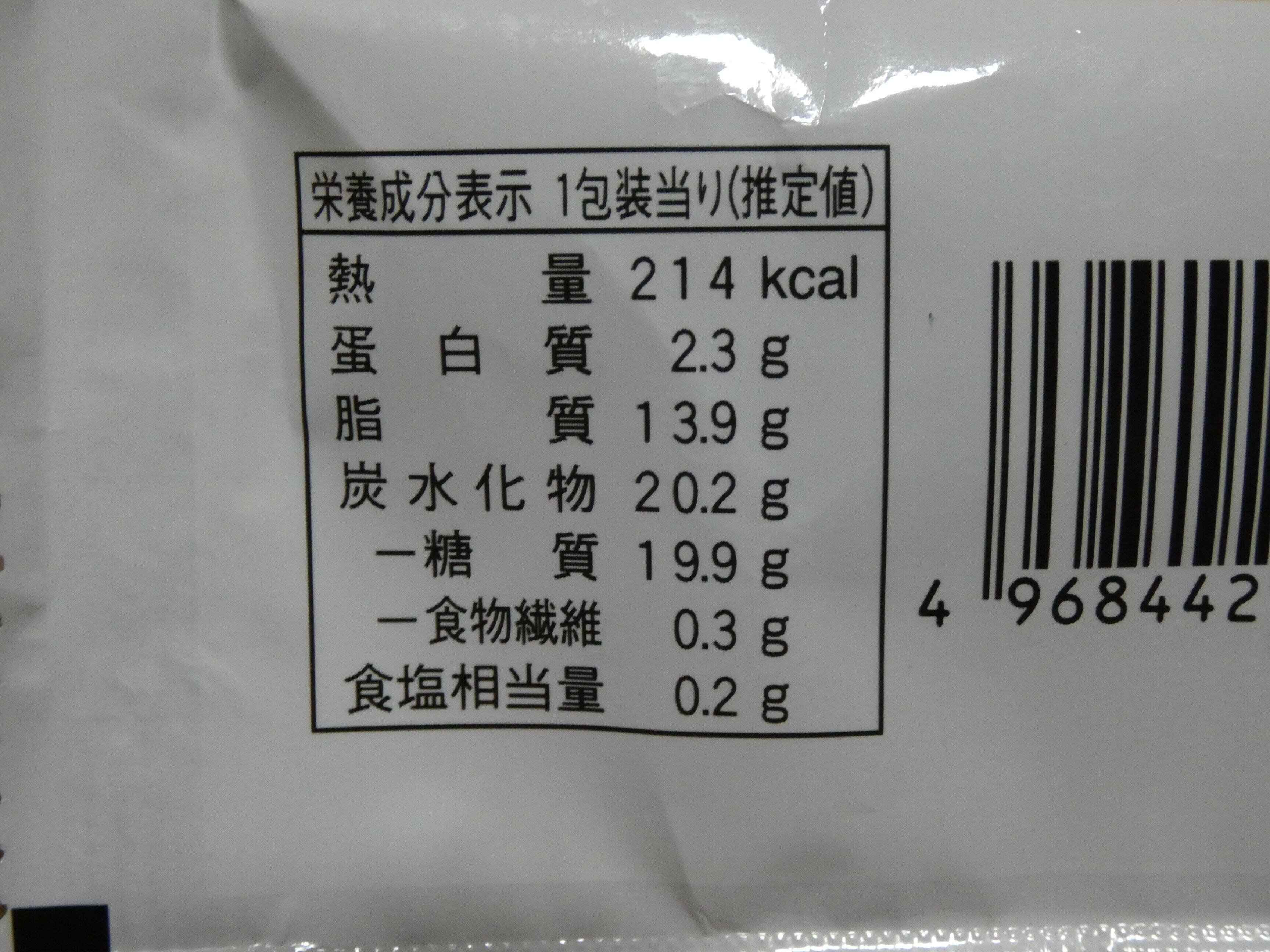 栄養成分表示を見ると1個のエネルギーは214kcal。