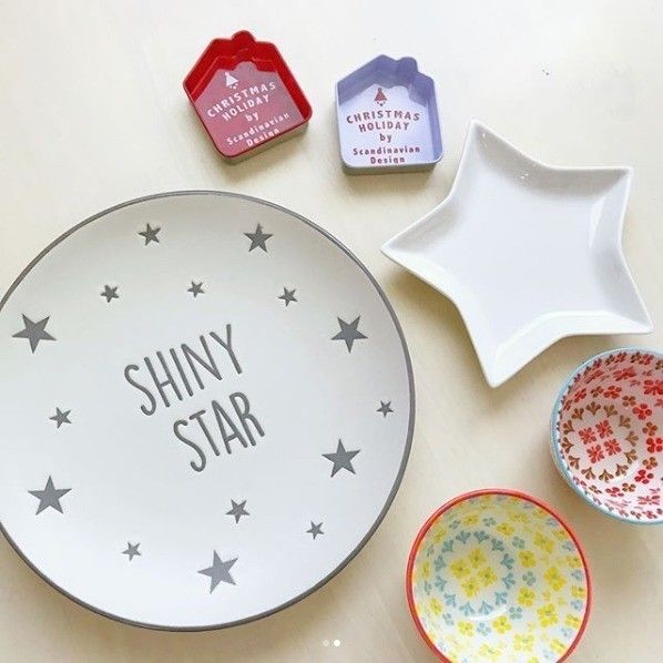 インスタグラマーのyuriekacoさんは、クリスマスに向けて星モチーフの食器をゲット。「SHINY STAR」のロゴ入りプレートはダイソー、星型のミニプレートはセリアで発見。