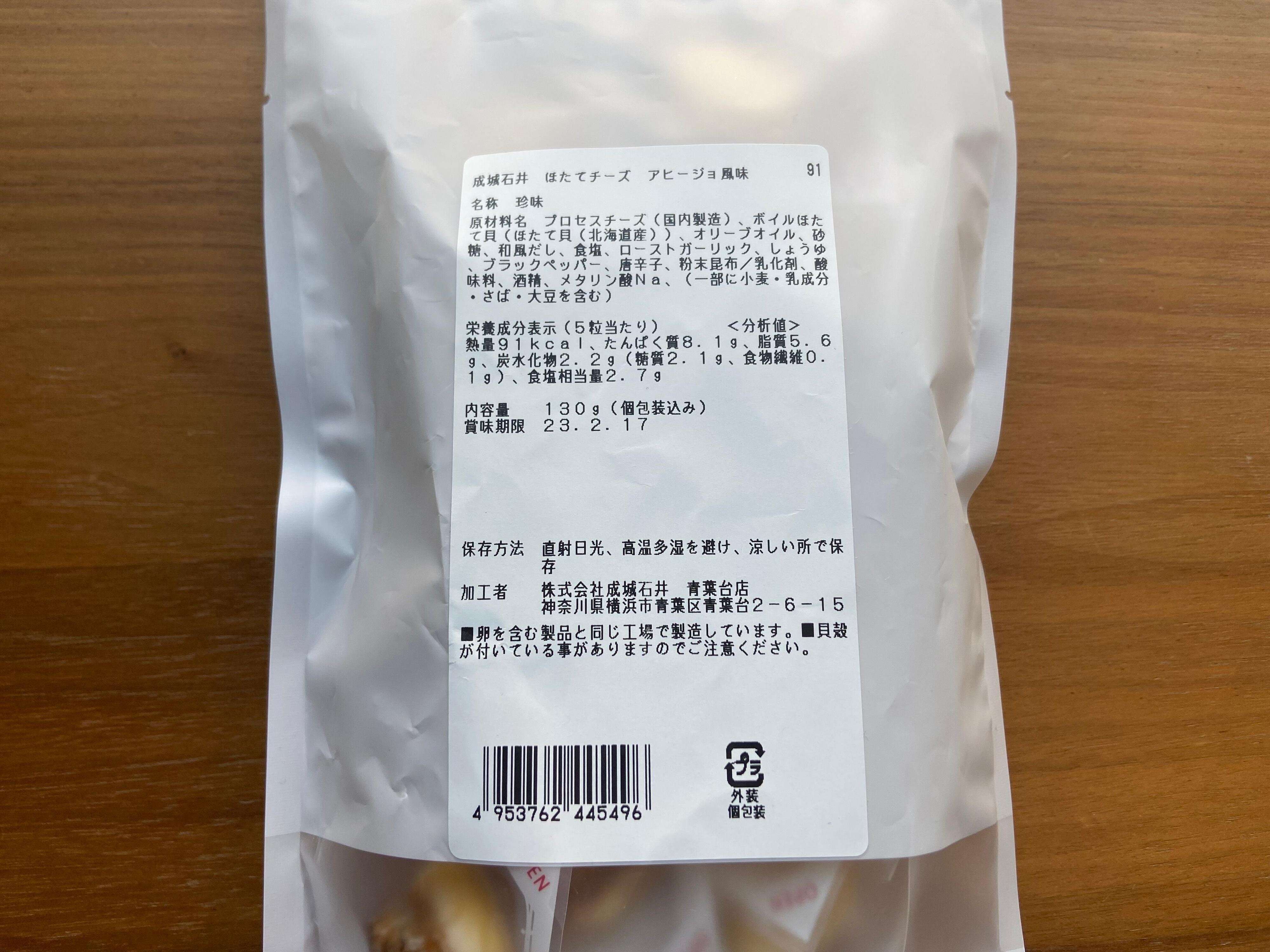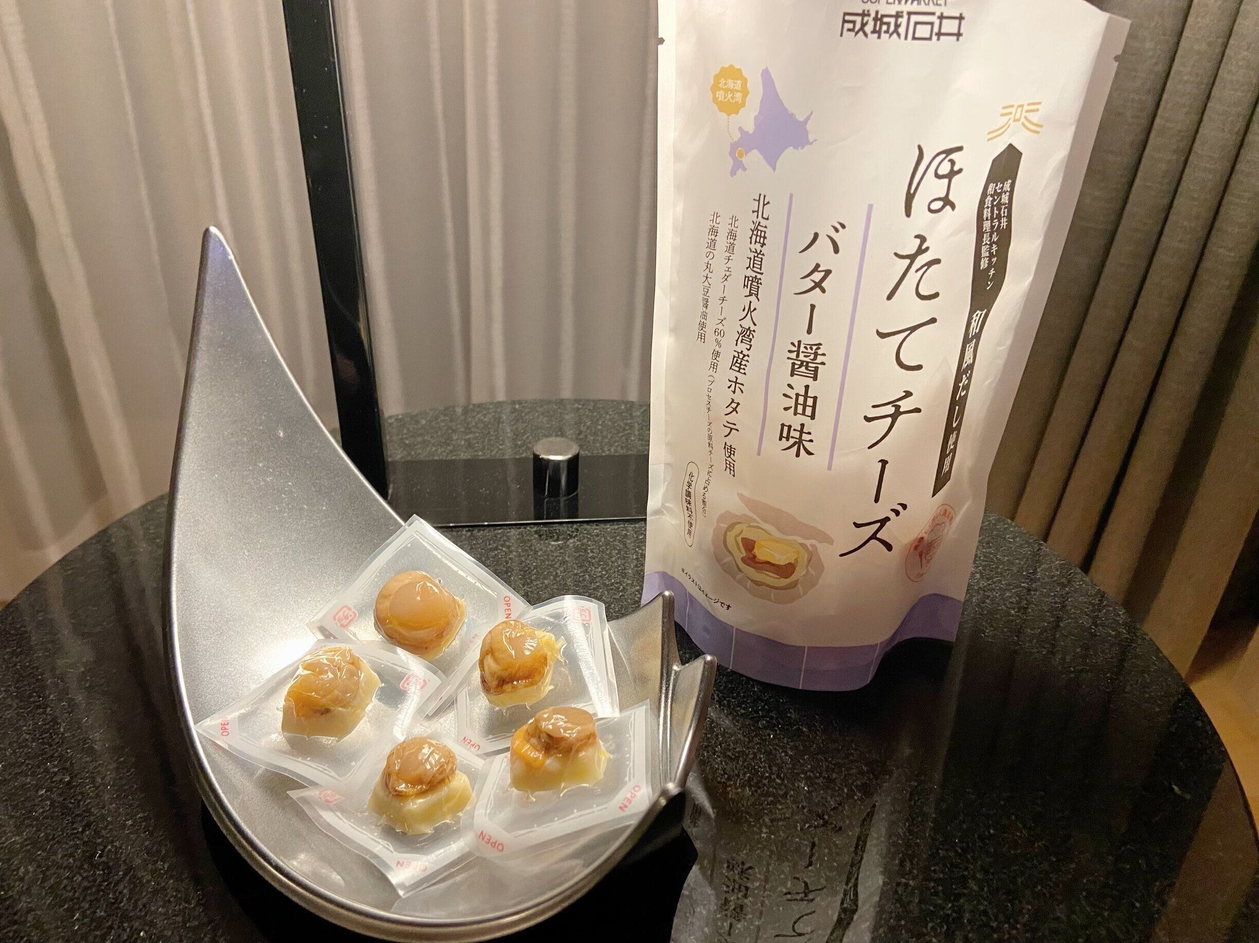 パッケージを開けると、一口サイズのほたてチーズが入っています。