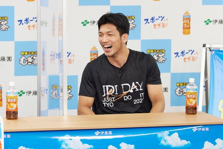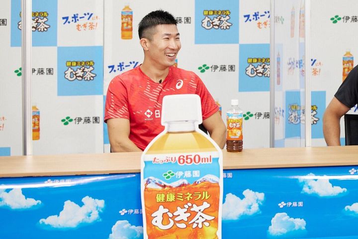 「朝練も合わせると、1日7~8本は健康ミネラルむぎ茶を飲んでいます。子どもの頃から飲んでいるむぎ茶というのもあって、もう生活の一部みたいなもの。飲みやすいんですよね」(桐生選手)