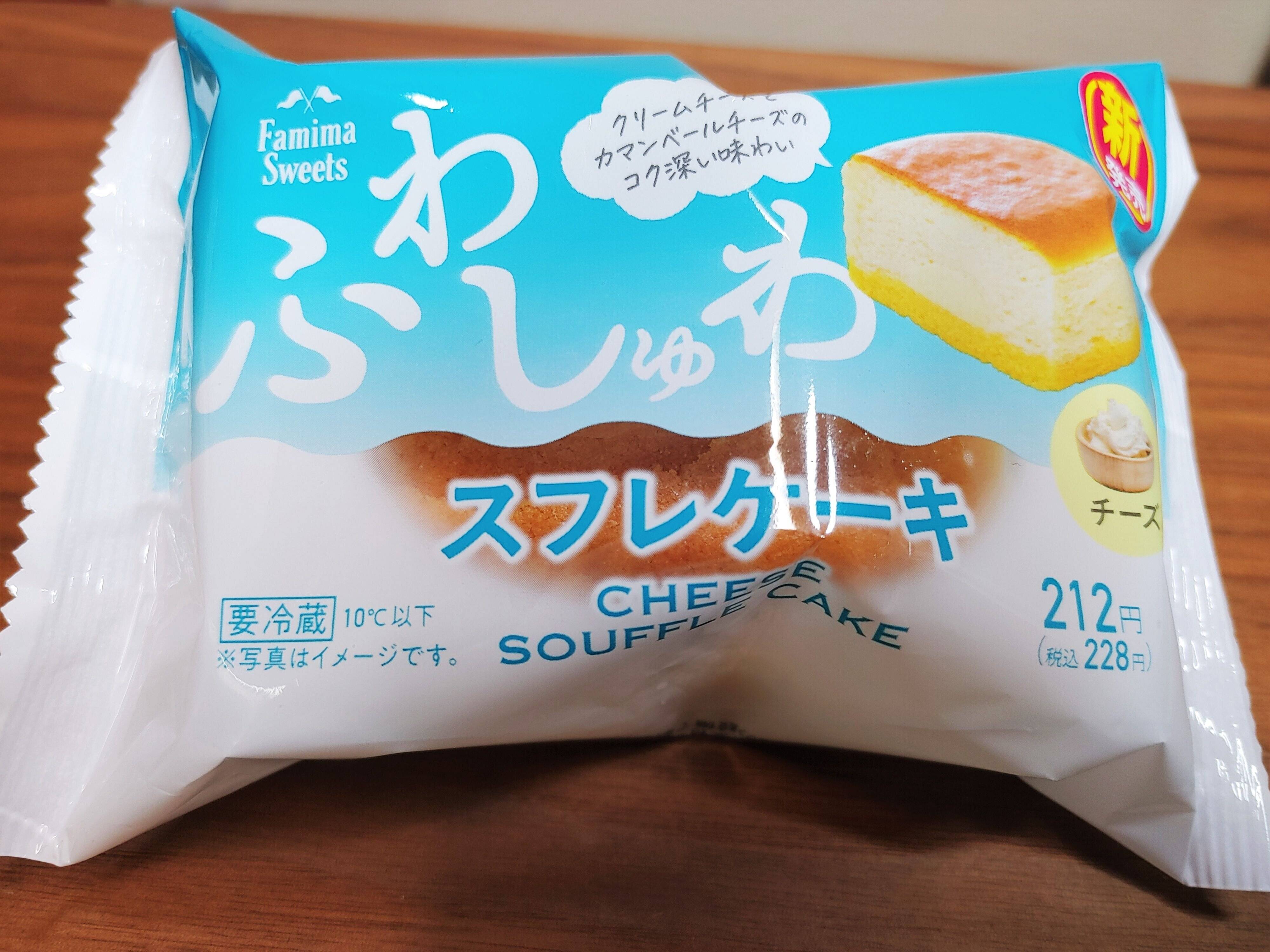 こちら、その名も『スフレケーキ』(228円)、フレーバーはチーズで、いわゆるスフレタイプのチーズケーキです。パッケージに大きく「ふわしゅわ」と書いてあるのが目を引きます。