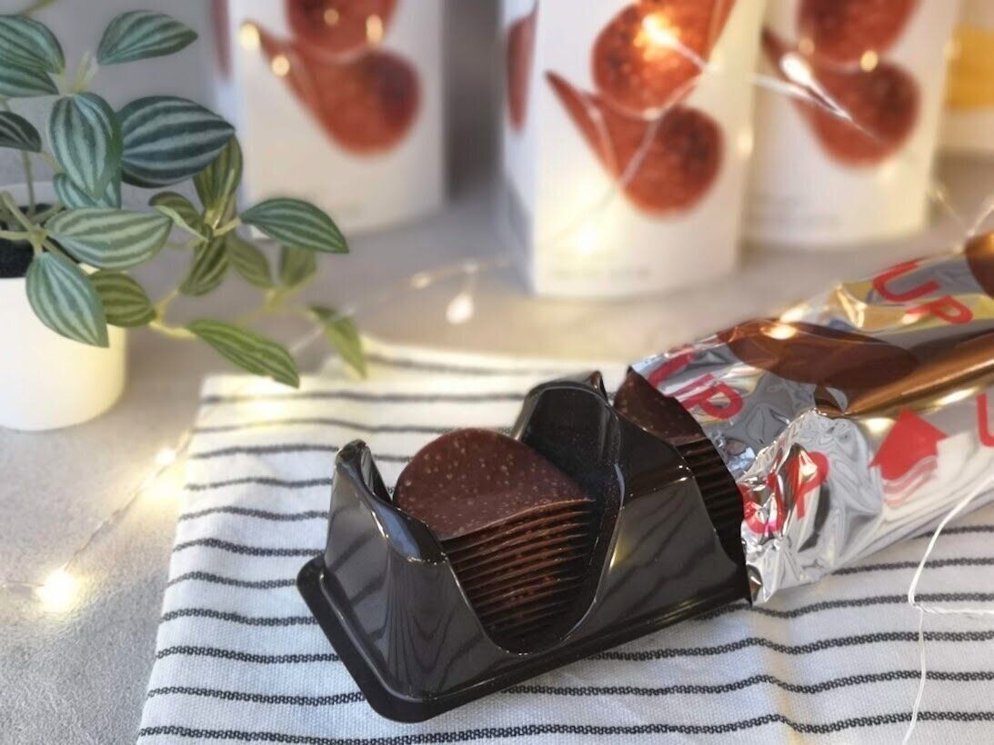 一見すると、ポテトチップにも見えるような、薄い見た目のチョコレートで、パリッと軽い食感が人気の商品です。