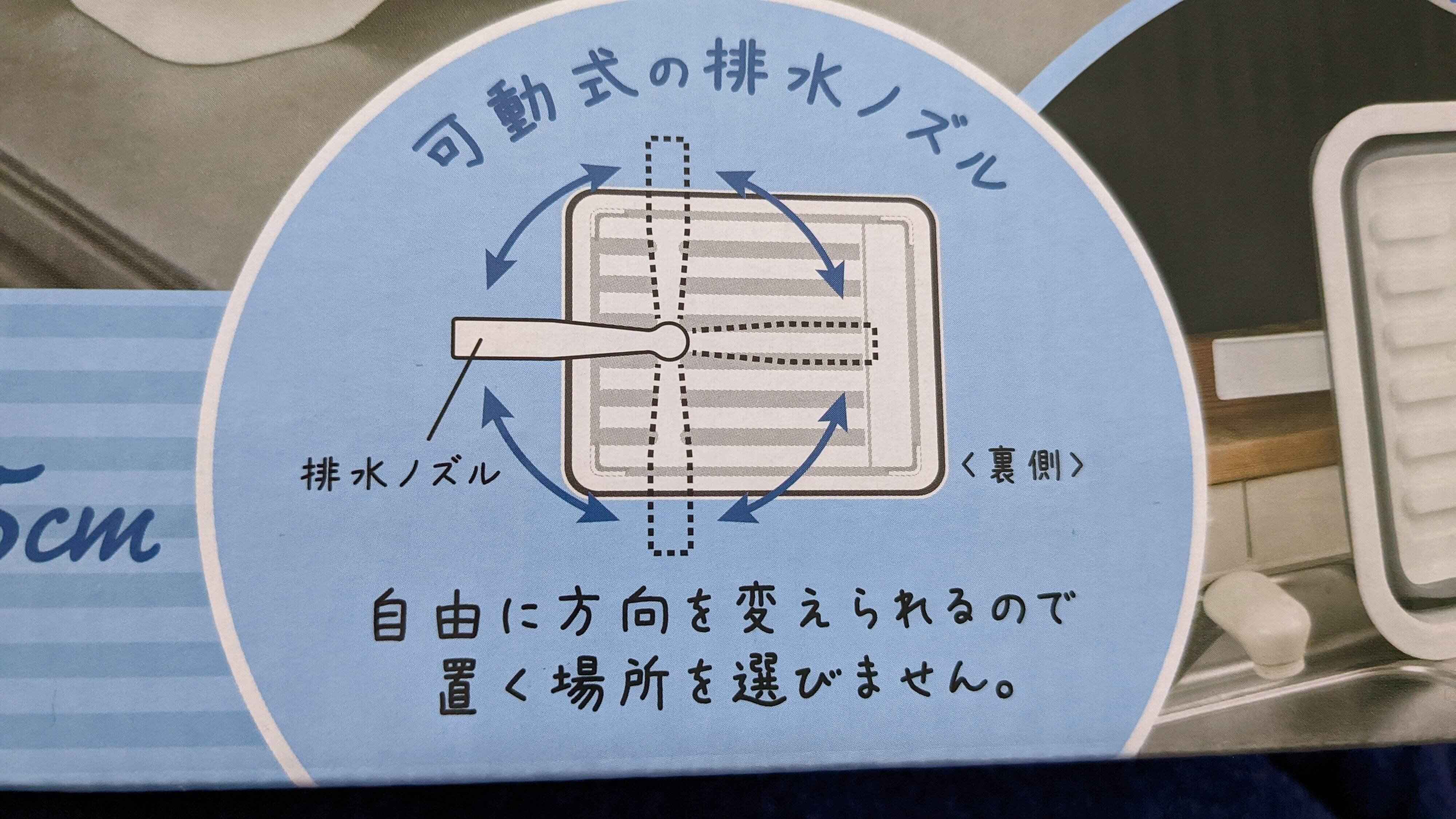 止水栓を外し排水ノズルをシンク側に動かすと水切りバスケットになります。排水ノズルは可動式なのでバスケットを縦にも横にも置けて場所を選びません。