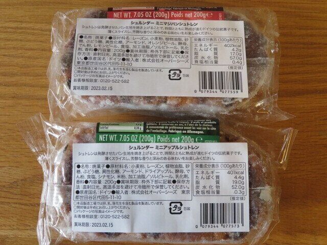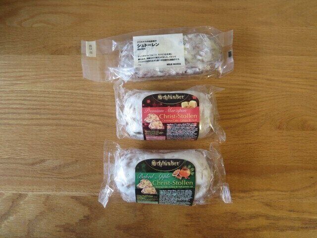 買ったのは、無印良品の「シュトーレン」(990円)と、カルディの「ミニマジパンシュトレン」「ミニアップルシュトレン」(各538円)です。