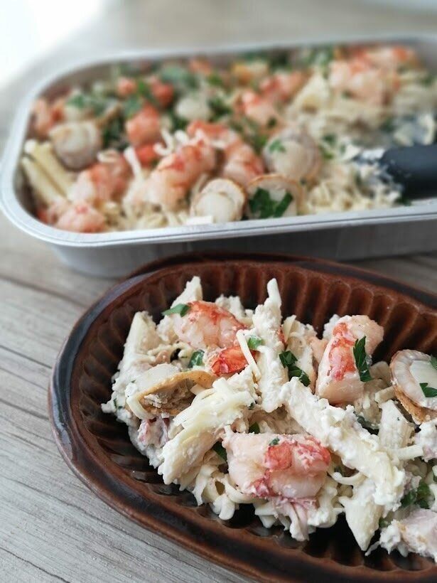 そのため、一般的なグラタンよりも軽い印象なので、パクパクと食べやすく、海老や帆立の素材のおいしさをダイレクトに楽しめるような仕上がり!