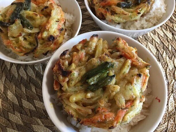 うどんや蕎麦にのせたり、ご飯の上にのせてかき揚げ丼に。野菜の甘みと揚げたてのサクッと感も楽しめるおいしいかき揚げ、冷凍庫に常備しておくと便利ですよ。