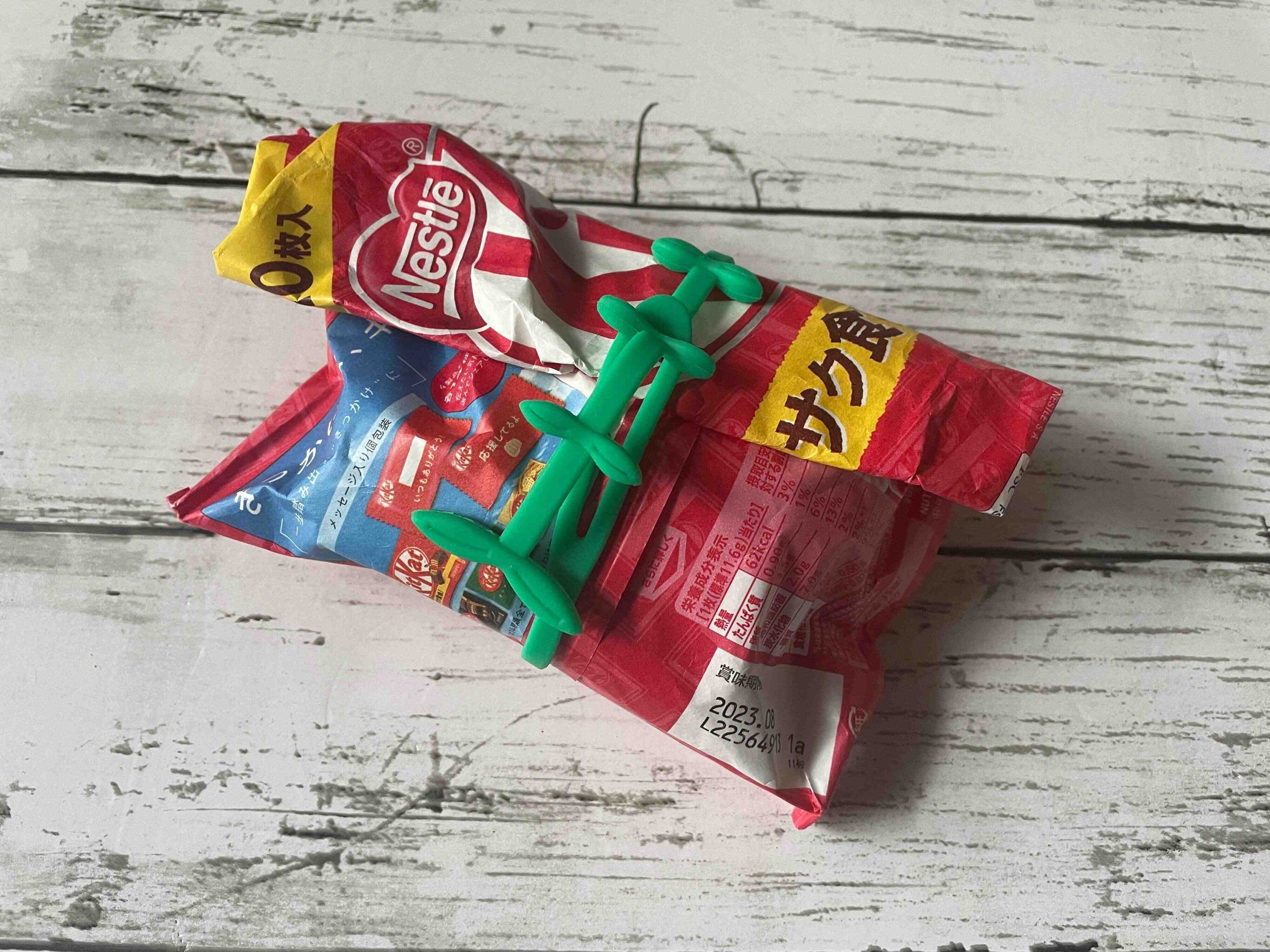 お弁当箱だけでなく、食べかけのお菓子の袋を留めるのにも使えます。