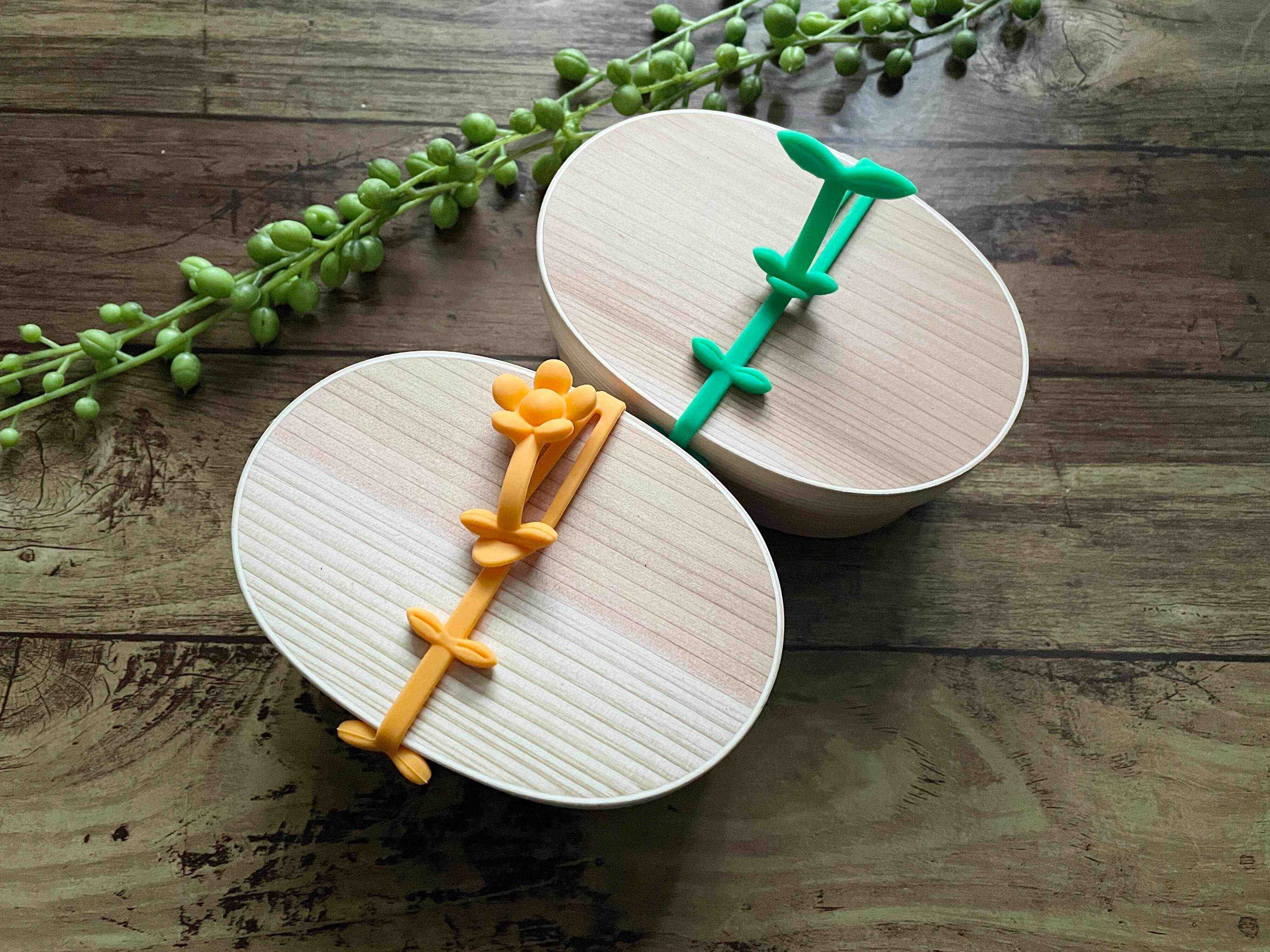 2段弁当には、サイズに合った専用のベルトが必要でしたが、「シリコンリーフランチベルト」なら、そのまま使えます。