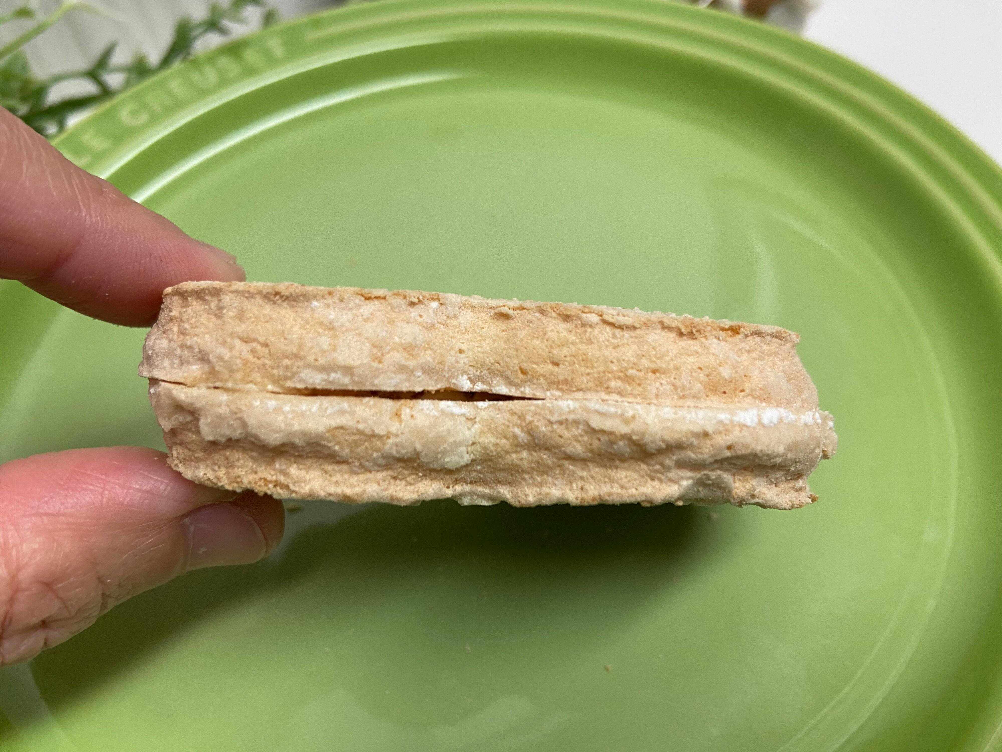 アーモンドをたっぷり入れて焼き上げたというダックワーズ生地は厚みがあり、ふかふか。