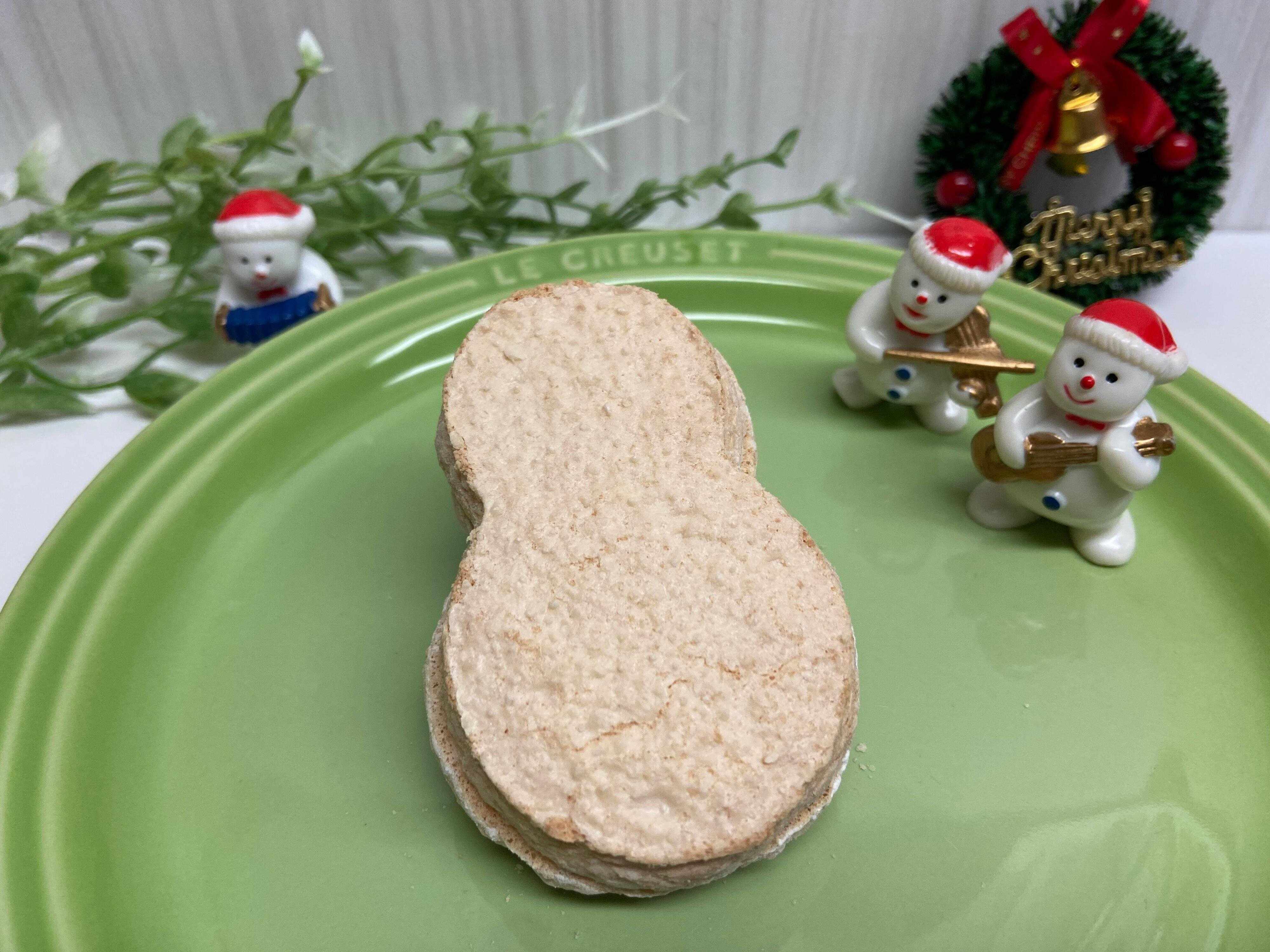 お会計中にレジ横の棚を見ると、パッケージのデザインがかわいすぎる小さなお菓子を発見!スノーマン型の「ストロベリーショートケーキダックワーズ」(購入時:129円)です。