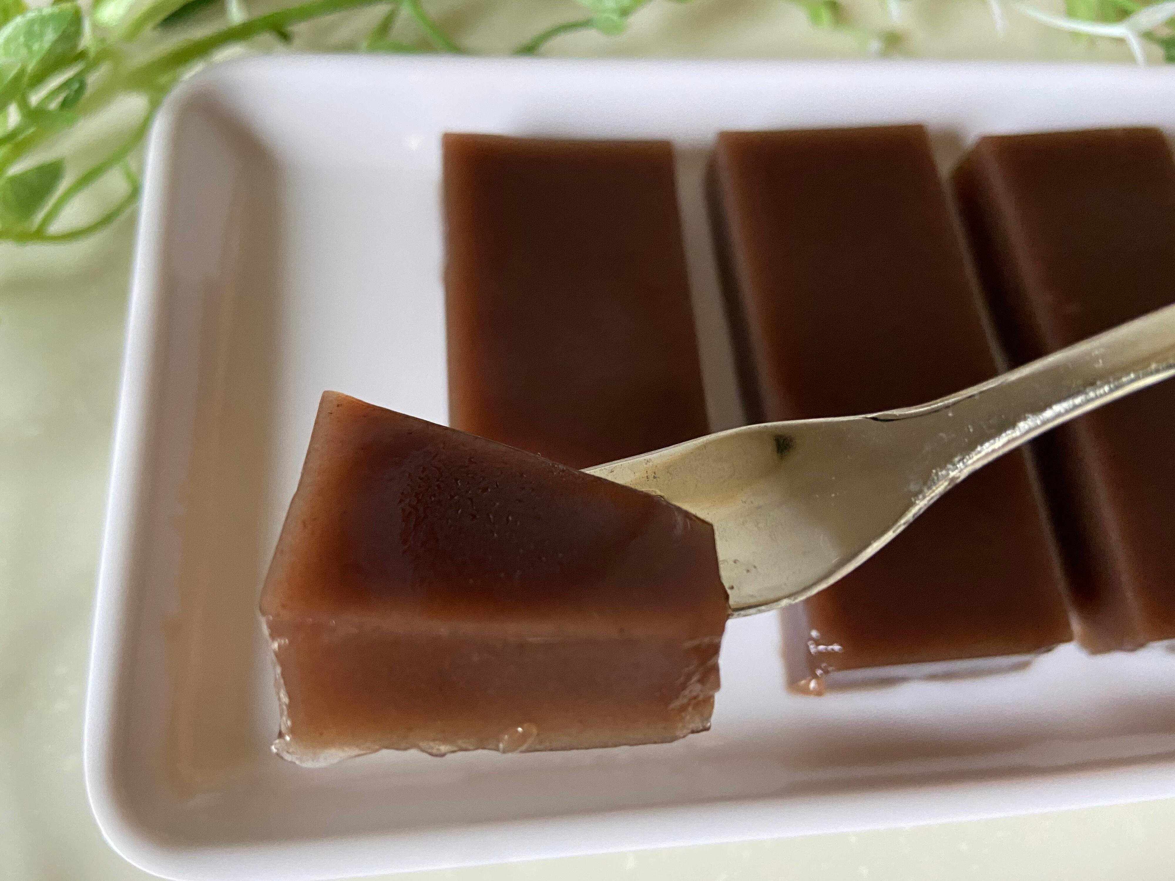 甘さは控えめであっさりとしていて、とても上品です。上品ななかにも小豆の味がしっかりと感じられ、なめらかで心地よい口どけ。冬にあたたかくしたお部屋で食べるみずみずしい羊かん、筆者にとっては新感覚の体験でした!