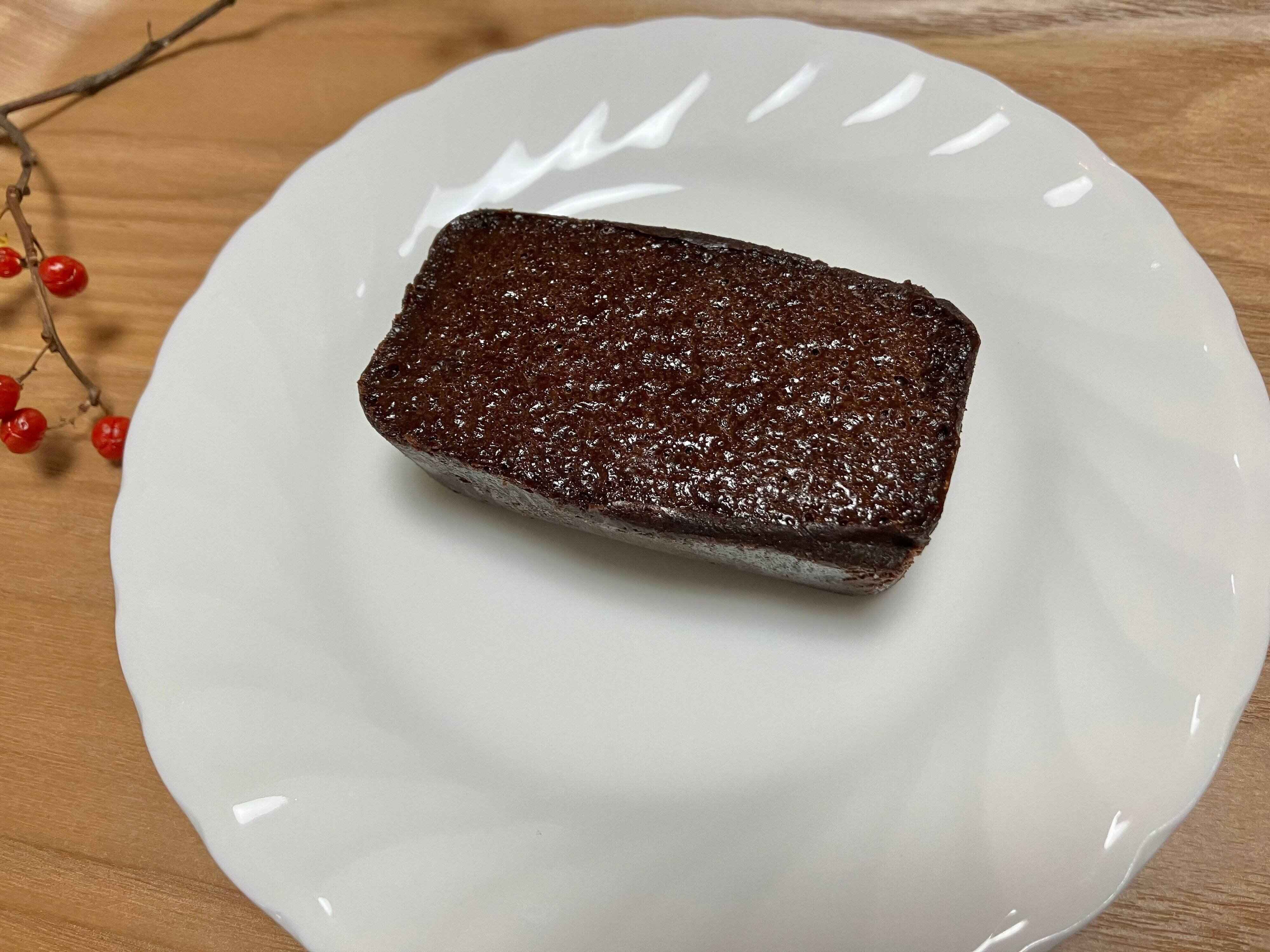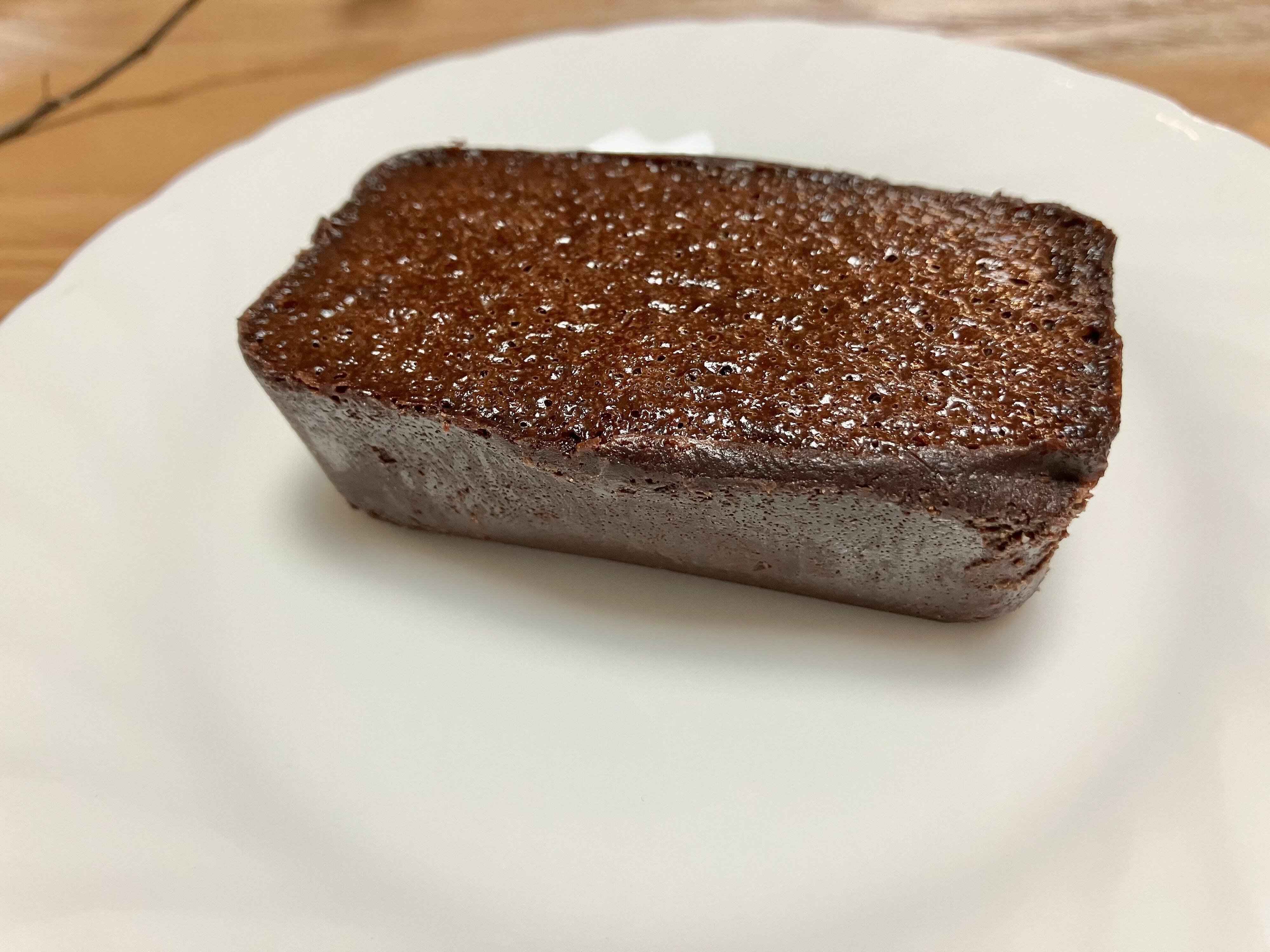中は2層のチョコケーキになっていて、上のチョコの方がなめらかな見た目。
