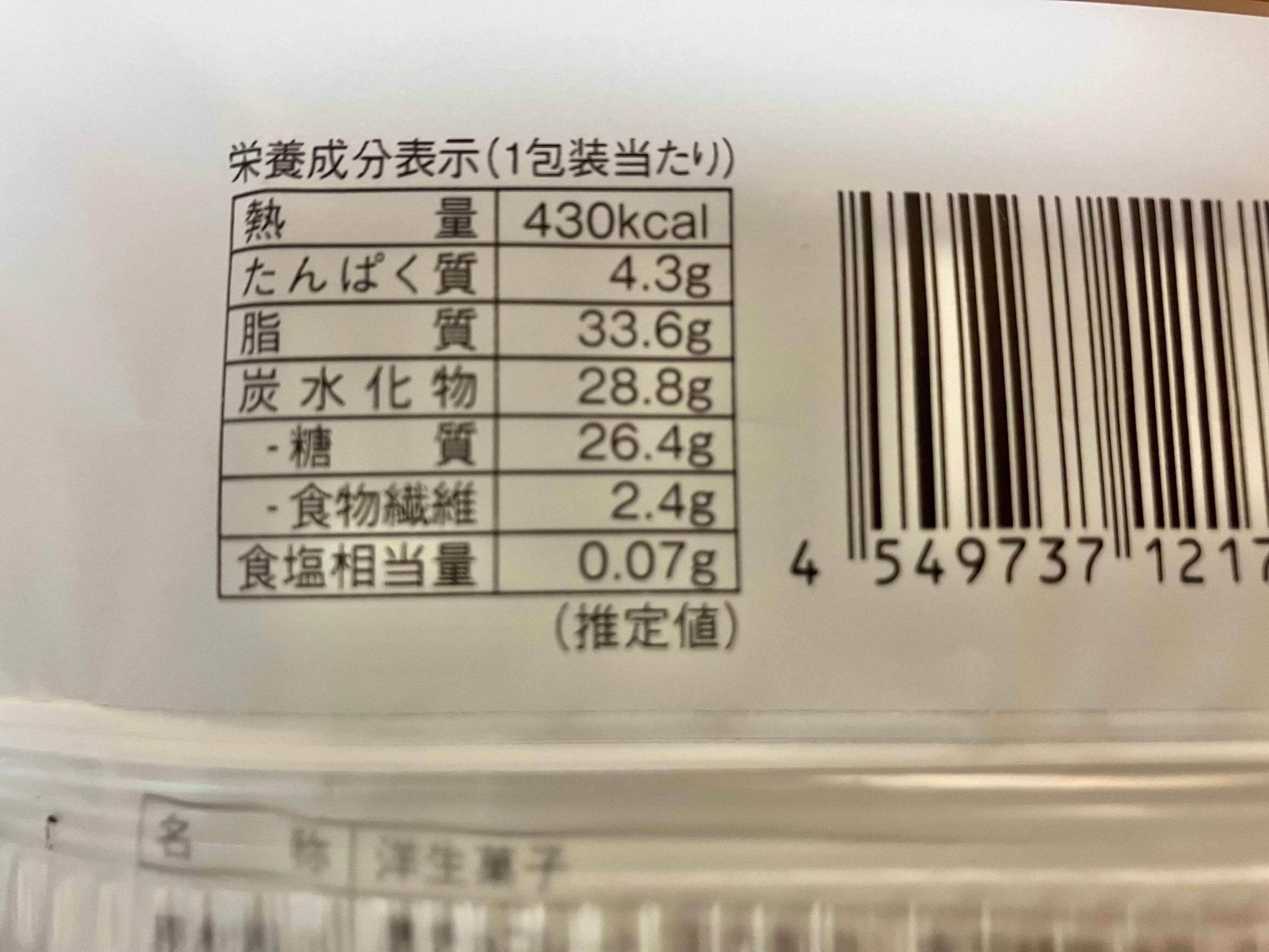 パッケージを開ける前に衝撃だったカロリー。この大きさで「1包装430kcal」ってだいぶ高いです!!