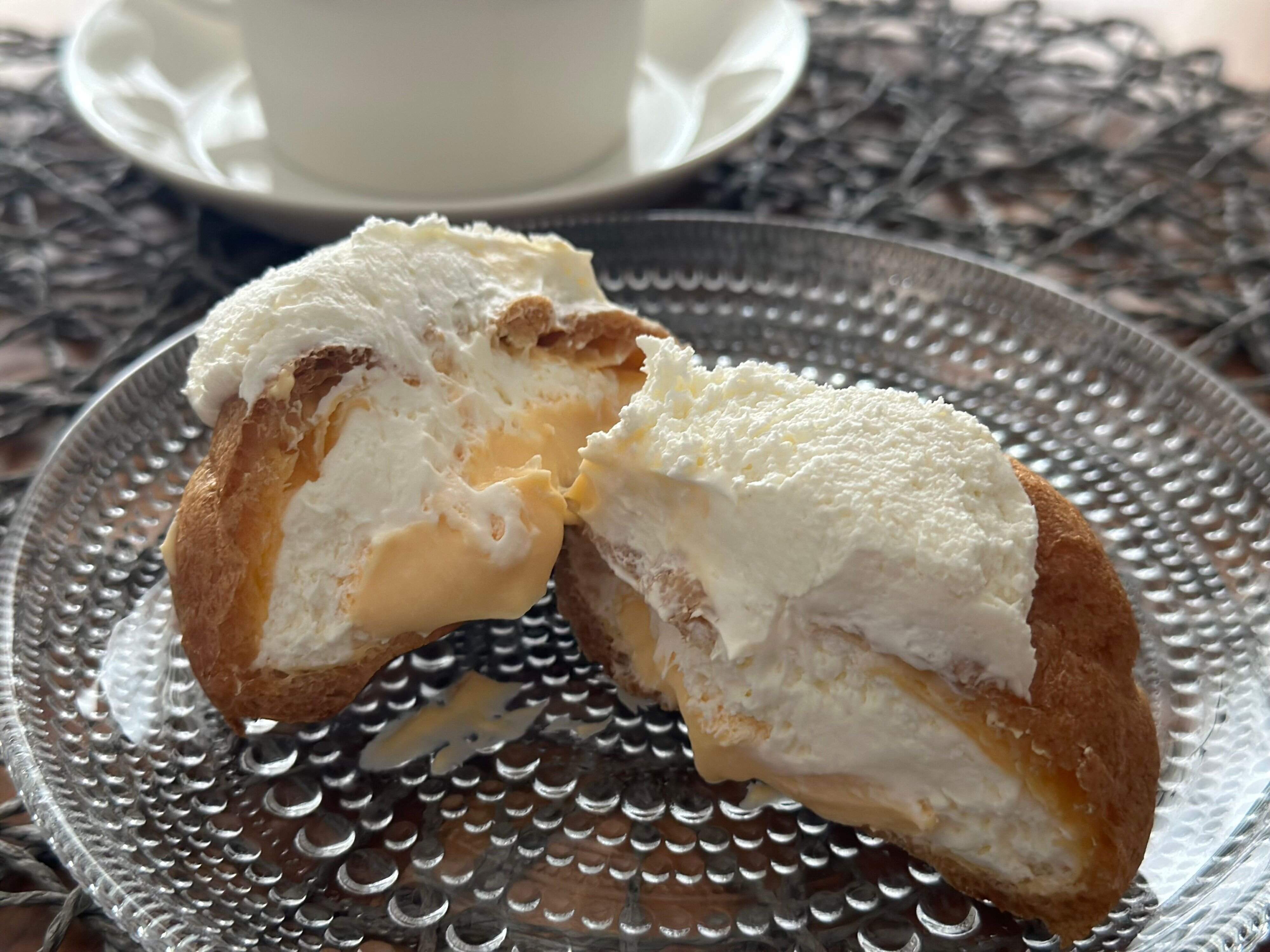 生クリームは程よい甘さでスッと溶ける軽い口溶け、カスタードクリームはトロリとした食感で、2種類の異なるクリームが満足度大です。