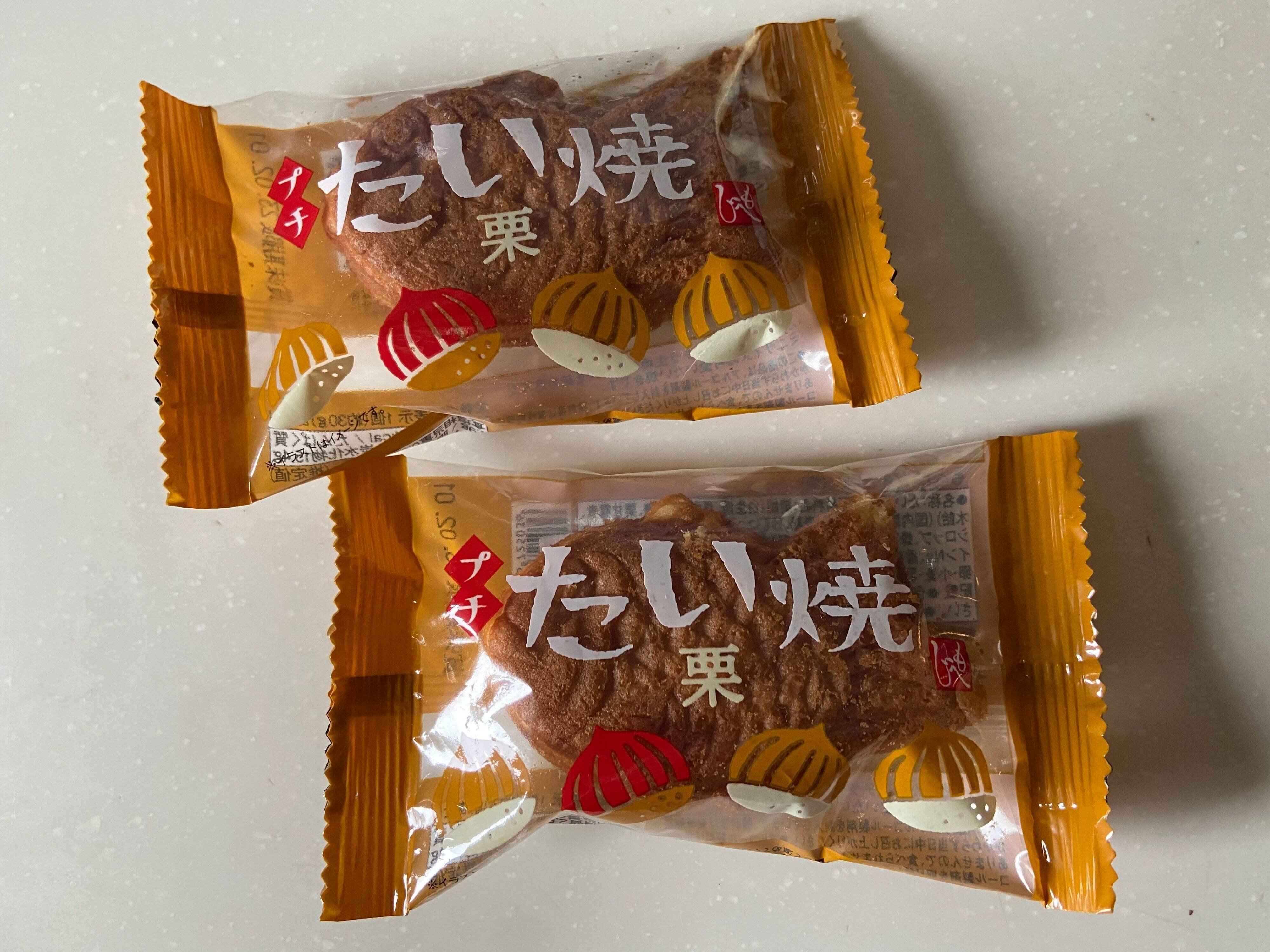つづいてはレジ横で見つけた、小さな小さな「プチたい焼 栗」(購入時:86円)。