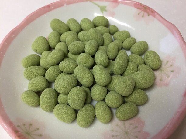 北海道産十勝あずきの甘納豆にホワイトチョコをコーティングし、宇治抹茶のパウダーがまぶされていて香りもとってもいいんです。