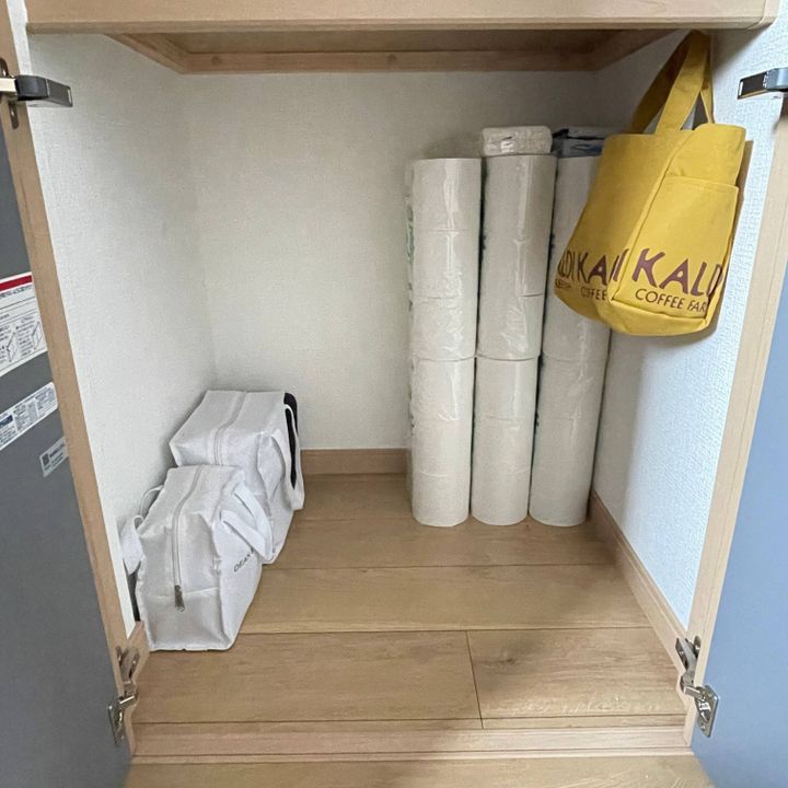 収納スペースに余裕があればペーパー類を、なければ石鹸や洗剤などというように、その時々の状況に合わせて必要な日用品を選べたらと思います。