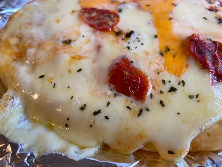 袋から取り出してオーブントースターで10分ほど焼けば、チーズがとろけてあふれ出してきました!この時点でとってもおいしそう!
