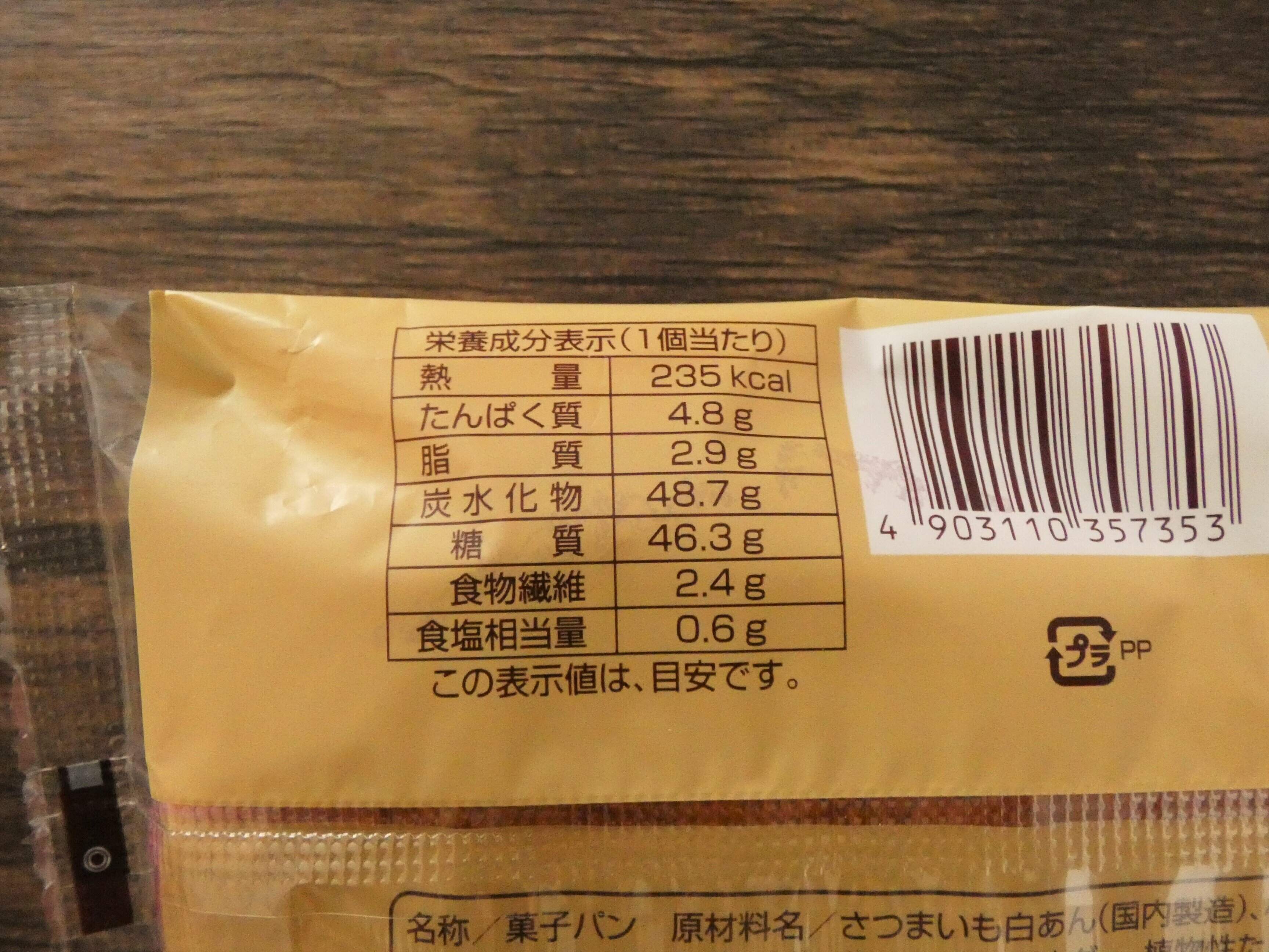 栄養成分表示を見ると1個のエネルギーは、235kcal。