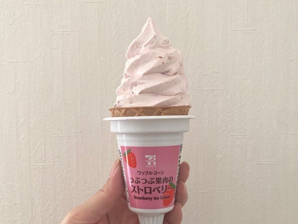 コーンの端までぎっしりとアイスが詰まっていてボリュームがありますが、コーンとのバランスがよく最後まで飽きずに食べられました。いちごの果肉感をしっかりと味わえ、スイーツにも近いような印象の贅沢アイス。気になる方はチェックしてみてくださいね。
