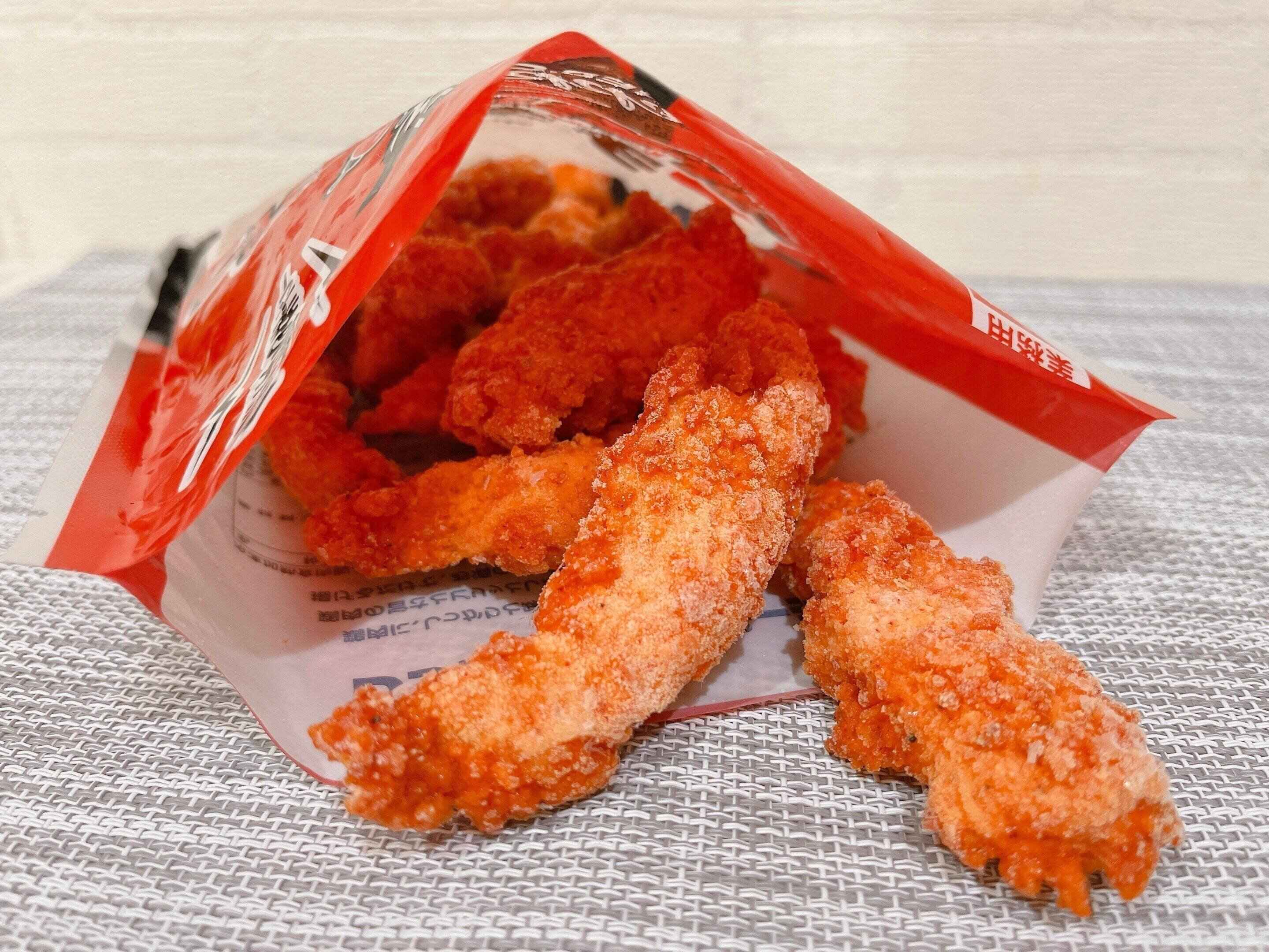 そしてそのあとにじわじわ辛さがやってきます。見た目が真っ赤で、ネーミングも「レッドチリペッパーチキン」なのでかなり辛いのを想像していましたが、実際は衣が辛いだけで中のチキンは味付けも薄めで、あっさりしていてクセもなく食べやすいですよ。辛いのが苦手な方や子どもは注意が必要です。