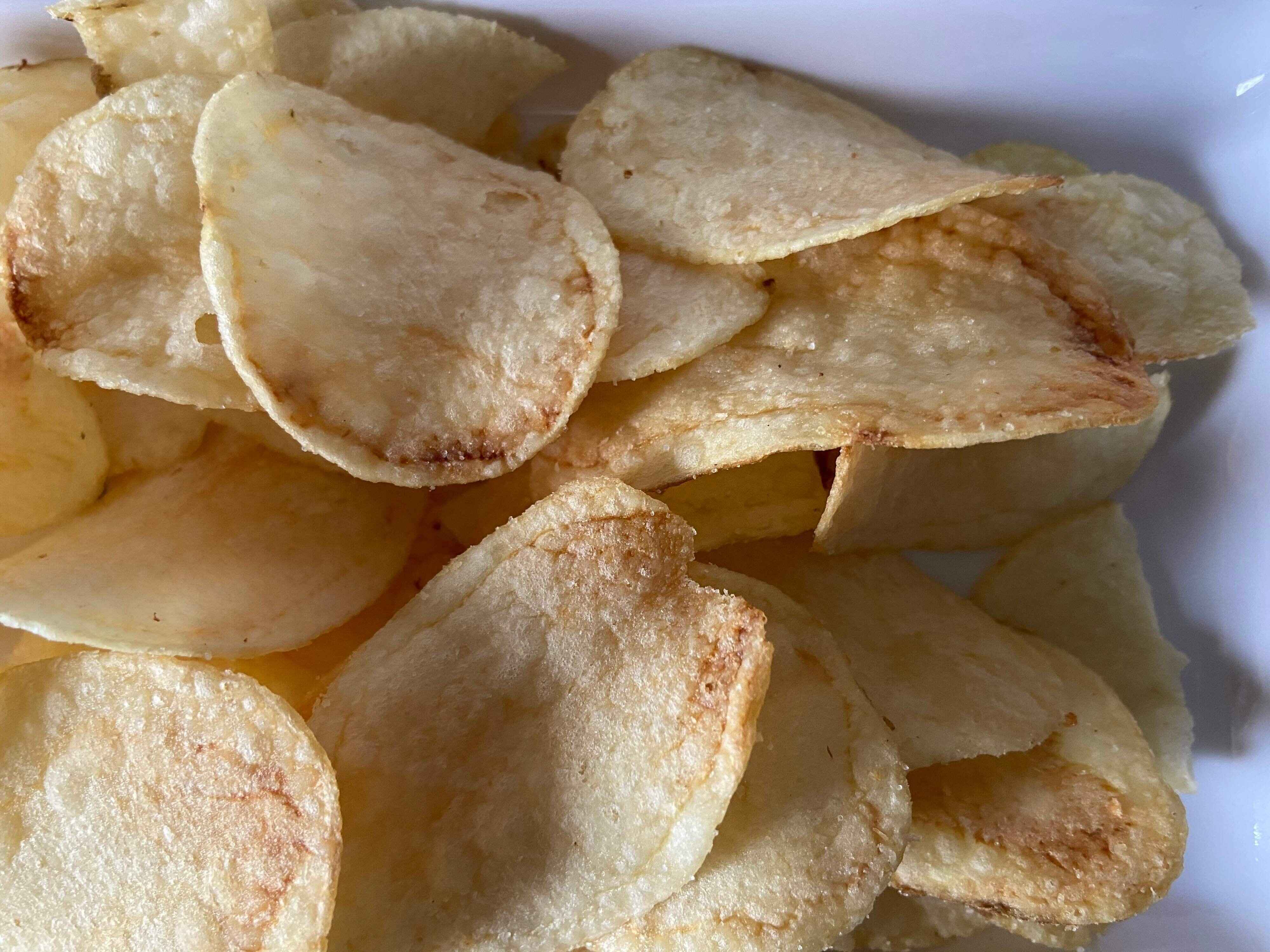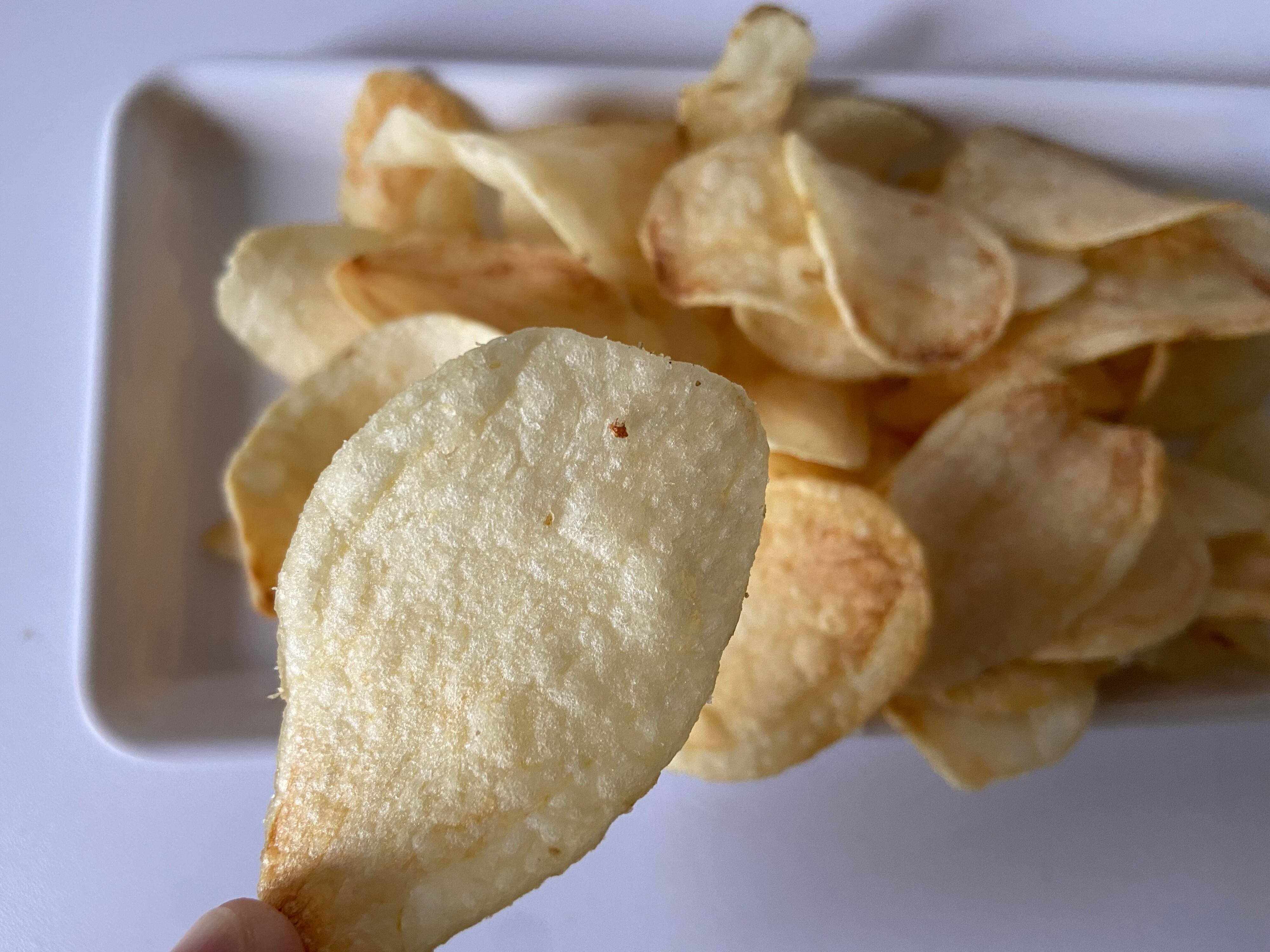 食べてみると一般的なポテトチップスに比べてあっさりとして上品な味わい。塩味が強すぎず、じゃがいものおいしさを引き立てるほどよい塩気がとってもおいしいです。