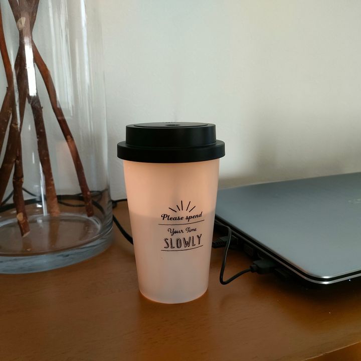 コーヒーカップ型でパッと見は加湿器に見えず、インテリア的にもオシャレでとってもかわいい加湿器。